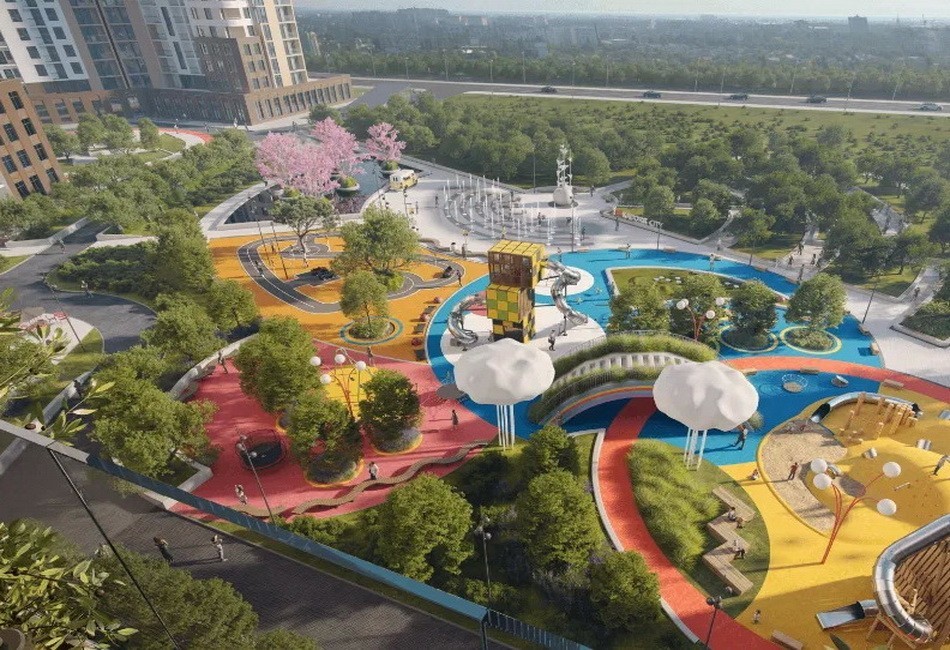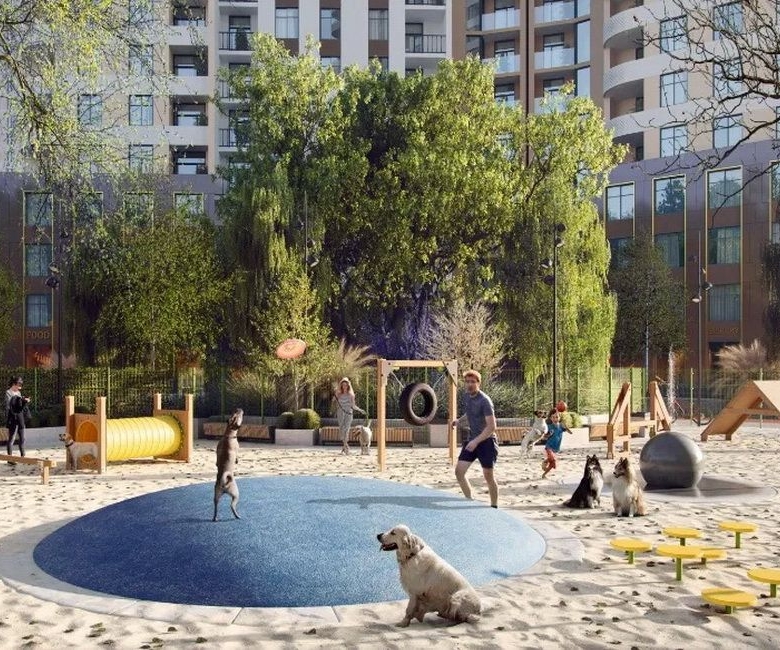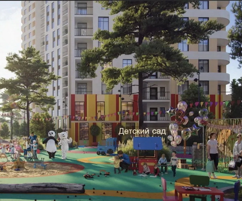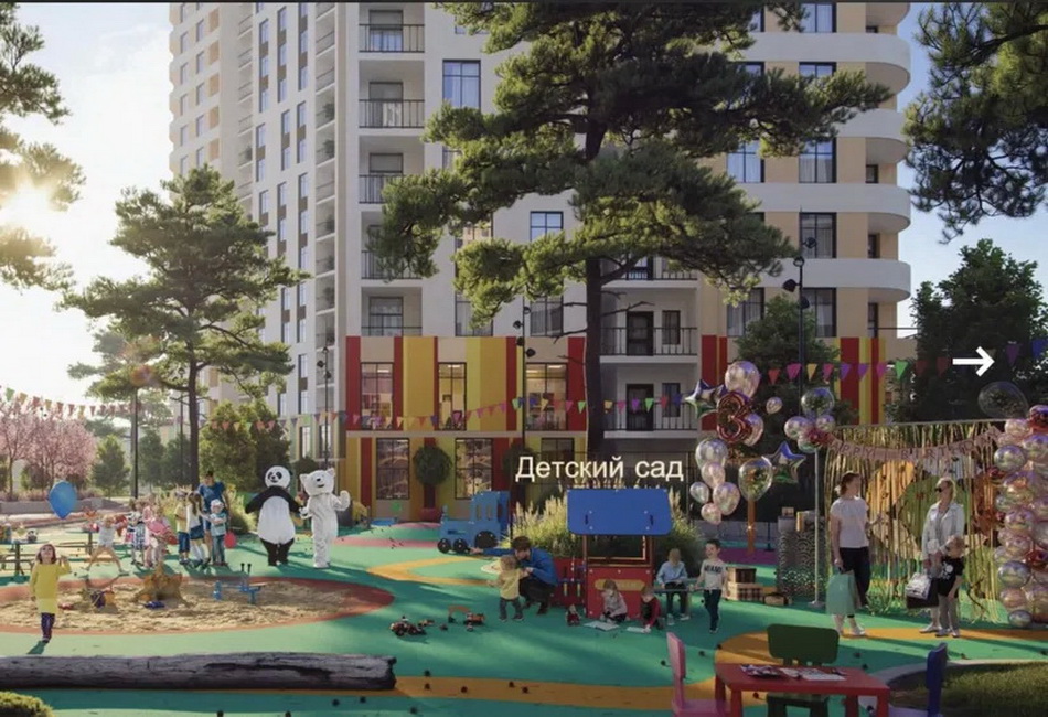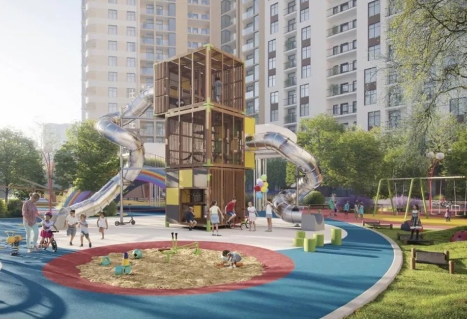 На території комплексу прокладена алея з зонами для відпочинку як для дітей, так і для дорослих, а також облаштована площадка для вигулу собак. Для найменших мешканців передбачено дитячий сад із двома рівнями захисту, няня-сервіс та багато тематичних ігрових майданчиків.
