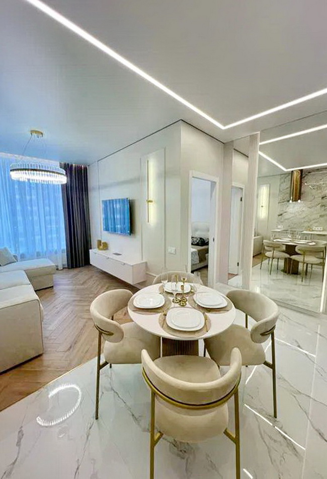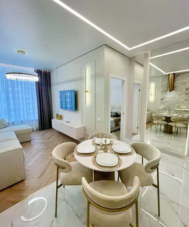 Усередині – розкішний ремонт преміум-класу, який вражає своєю елегантністю. Чудові меблі та найсучасніша побутова техніка з елементами “розумного дому” створюють комфорт, про який ви завжди мріяли. А тепла підлога додає затишку в зимові вечори, забезпечуючи вам комфорт протягом усього року.