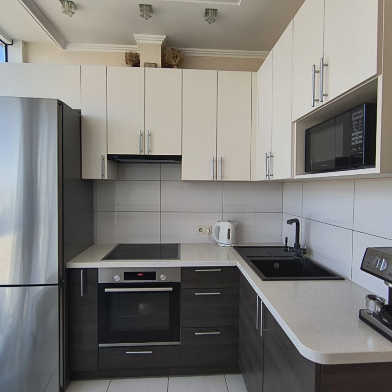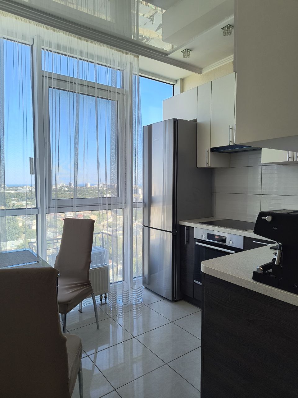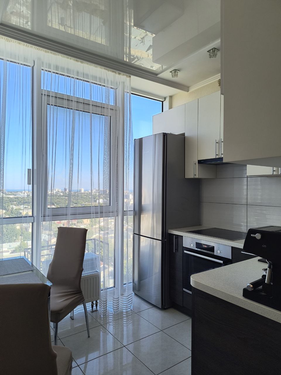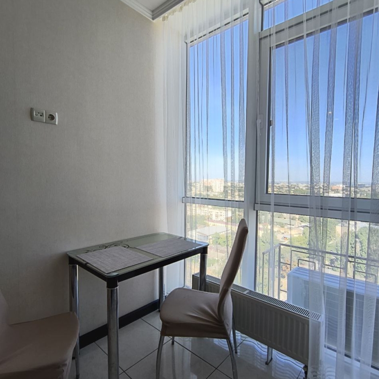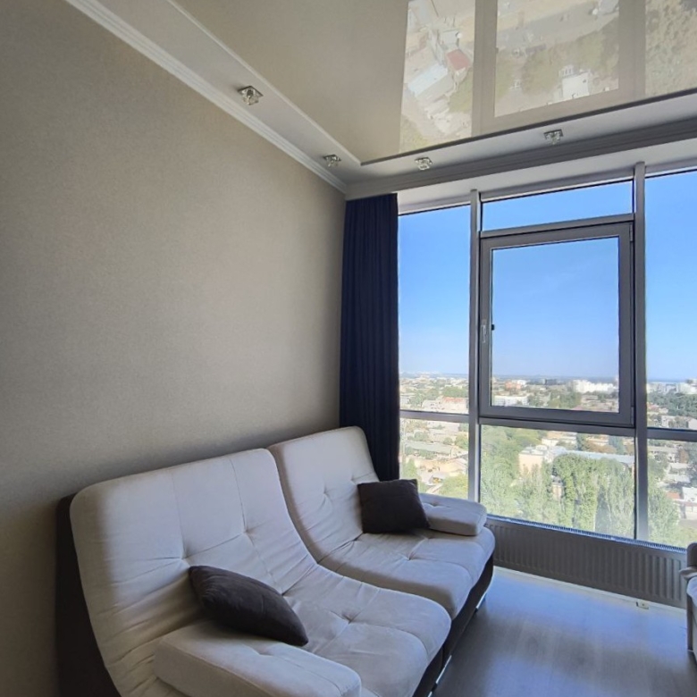 З вікон відкривається захоплюючий панорамний вид на місто та море, що додає відчуття свята у вашому житті. Ремонт виконаний з любов’ю та якісно, а також є стильні вбудовані меблі та сучасна побутова техніка.