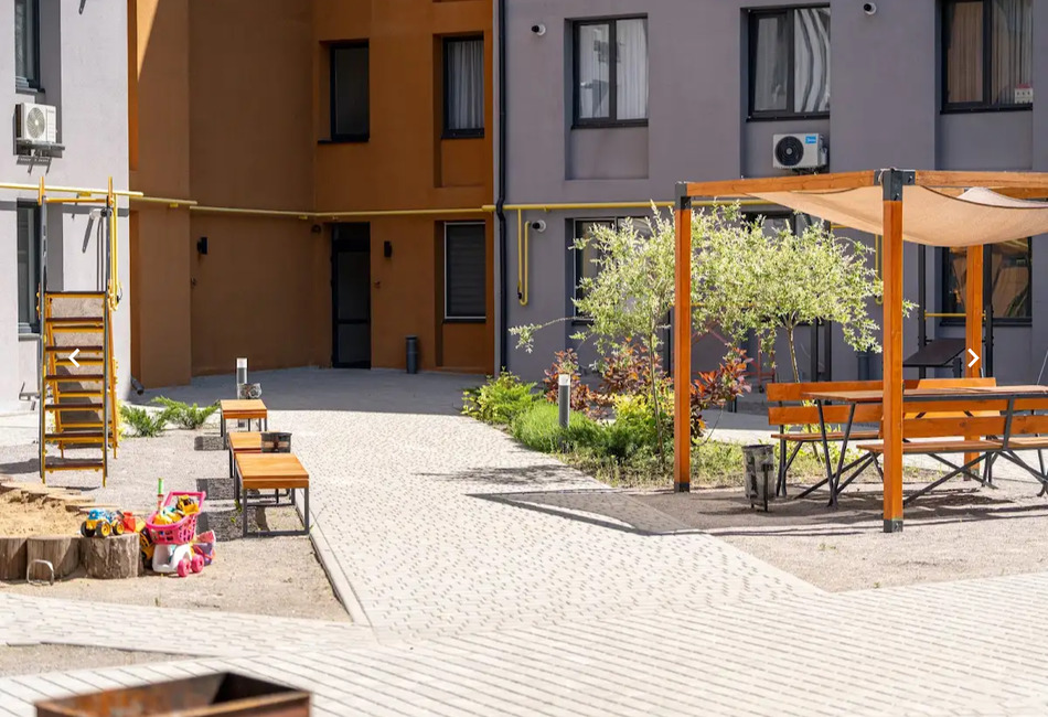 Зона навколо будинку — це справжня оаза комфорту: закрита благоустроєна територія без автомобілів, де ви можете насолоджуватись прогулянками, займатись спортом або просто відпочивати на свіжому повітрі.