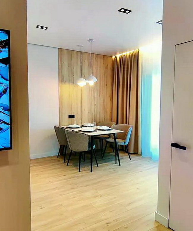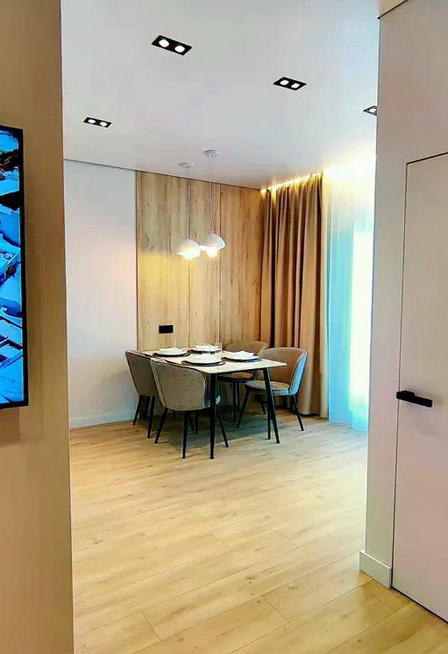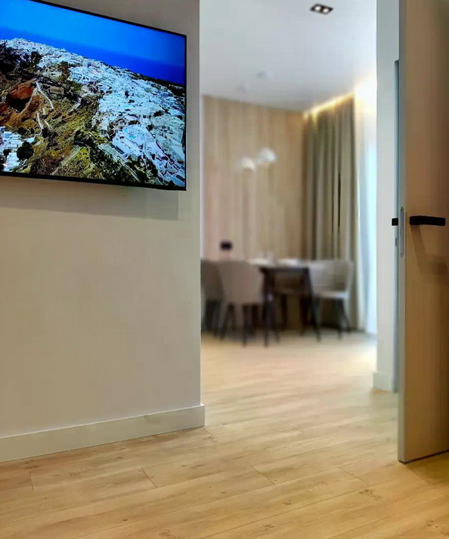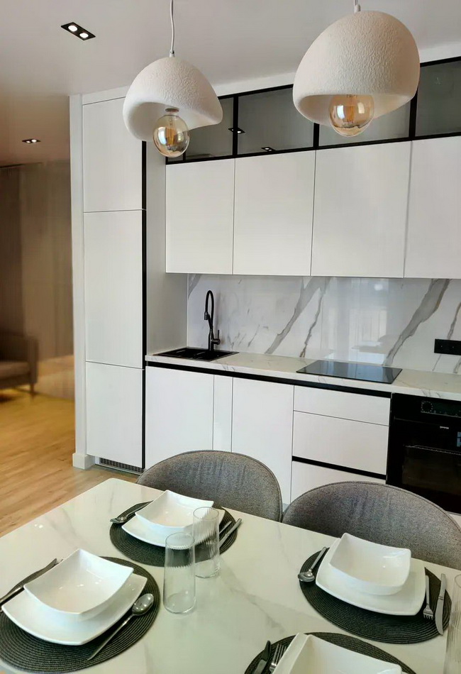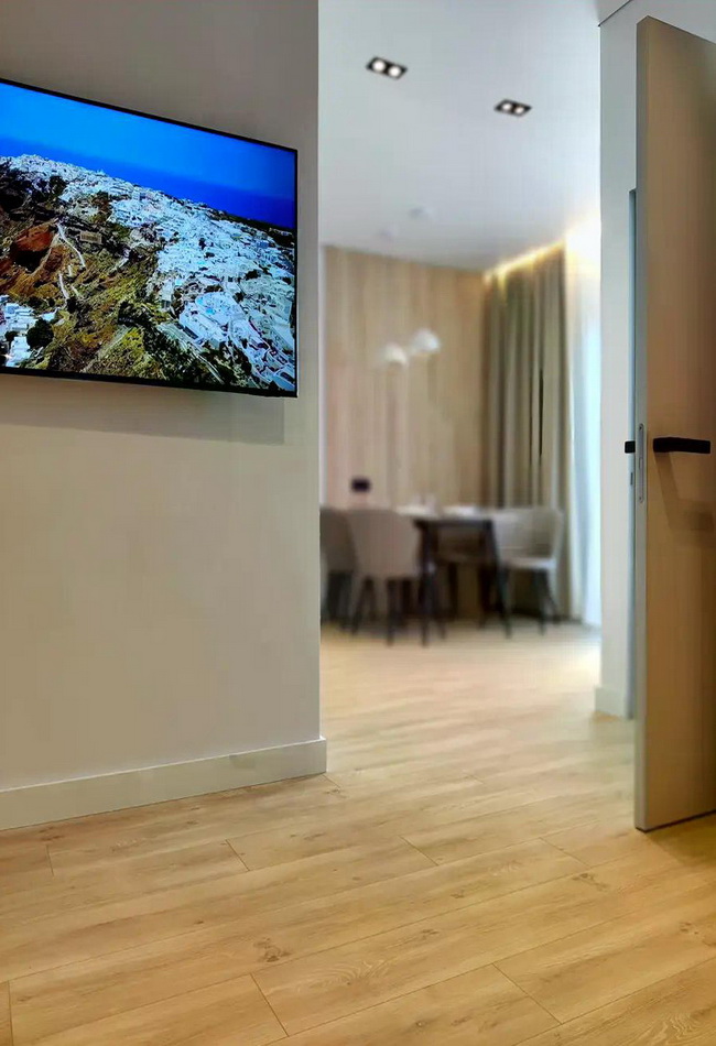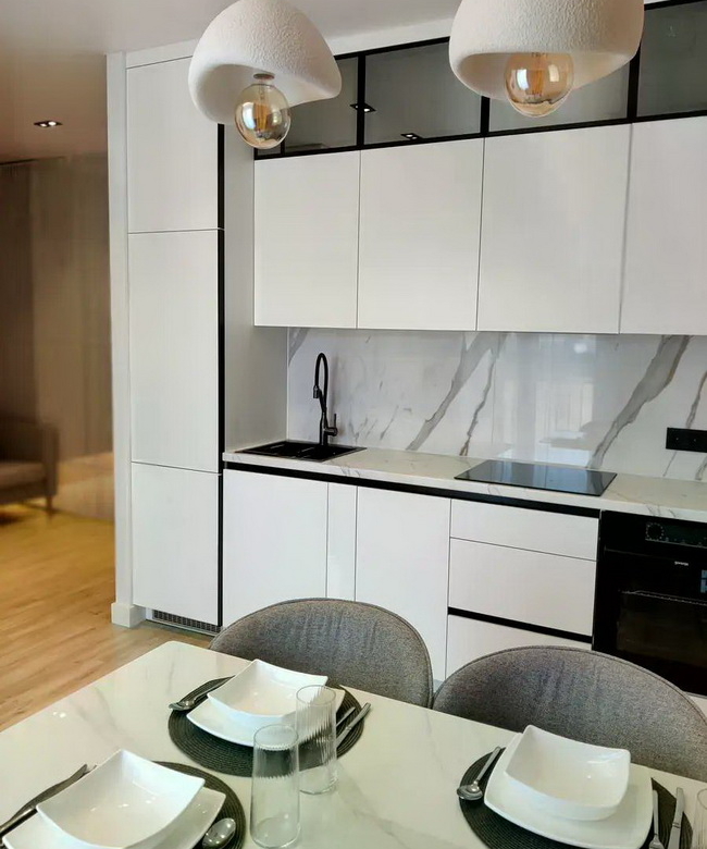 Техніка: сучасний телевізор, вбудований холодильник, посудомийна машина, пральна машина, духова шафа та бойлер на 80л — все продумано для вашого комфорту!