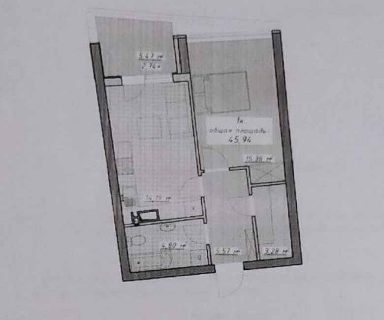 • Житлова кімната — 15,3 м² — велике простір, що дозволяє легко зонувати та організувати ідеальну атмосферу для відпочинку та спілкування.