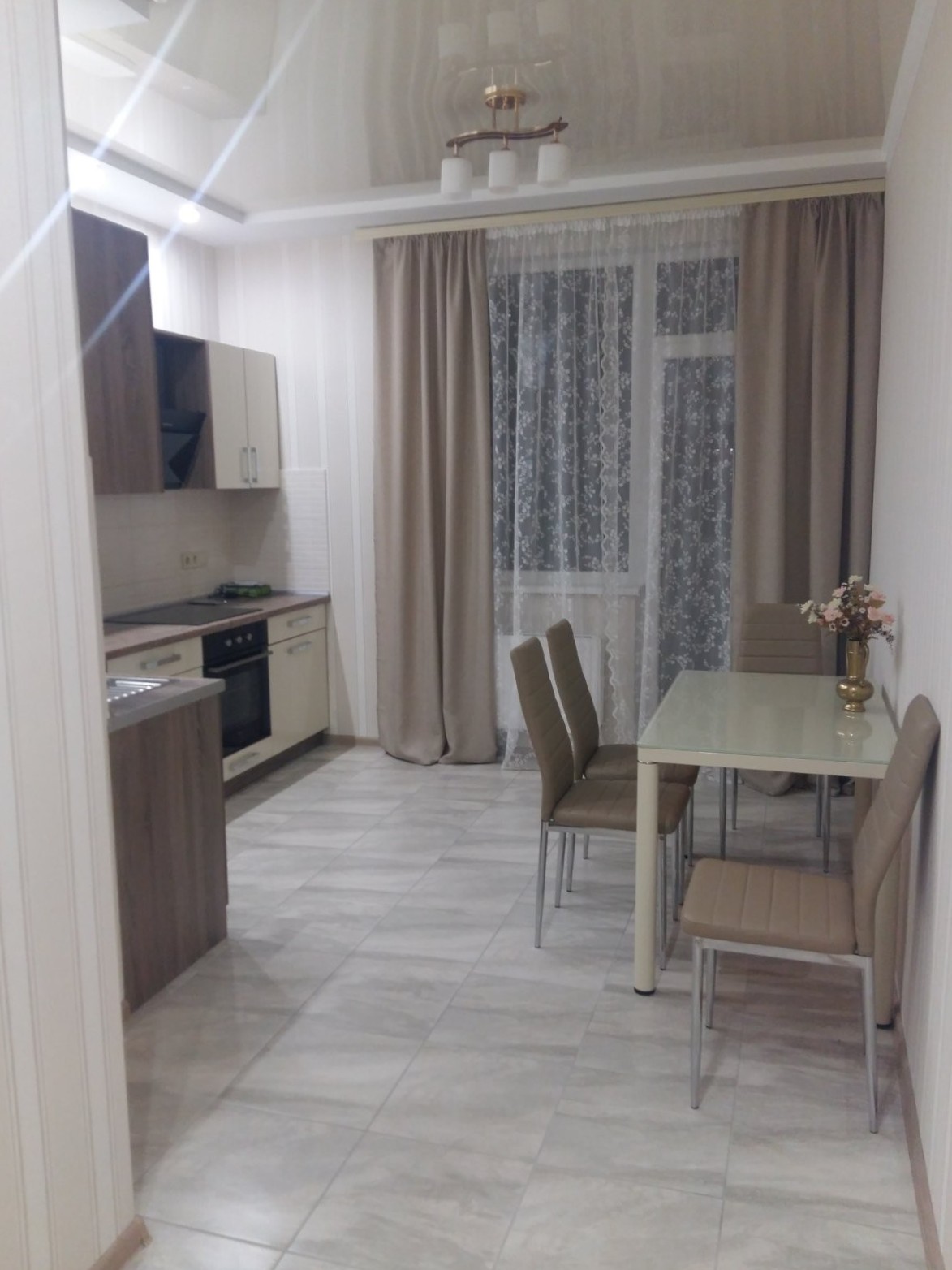 Кожен деталь продуманий до дрібниць: ремонт у м’яких, спокійних тонах “крем-брюле” налаштовує на відпочинок. Натяжні стелі та світлі шпалери лише підкреслюють елегантність і затишок вашого нового дому.