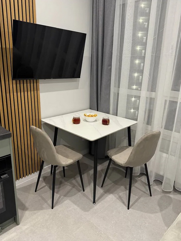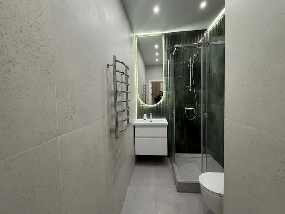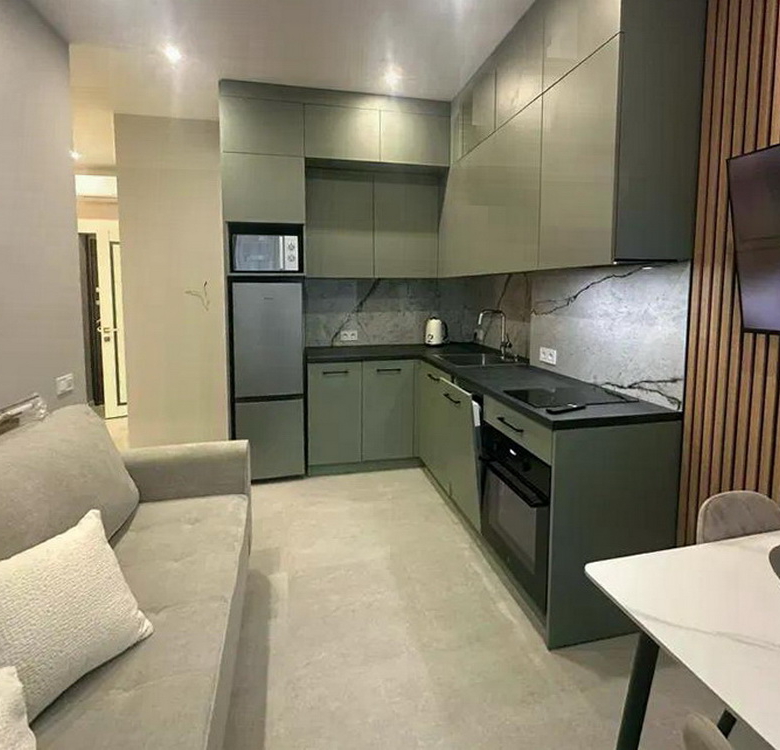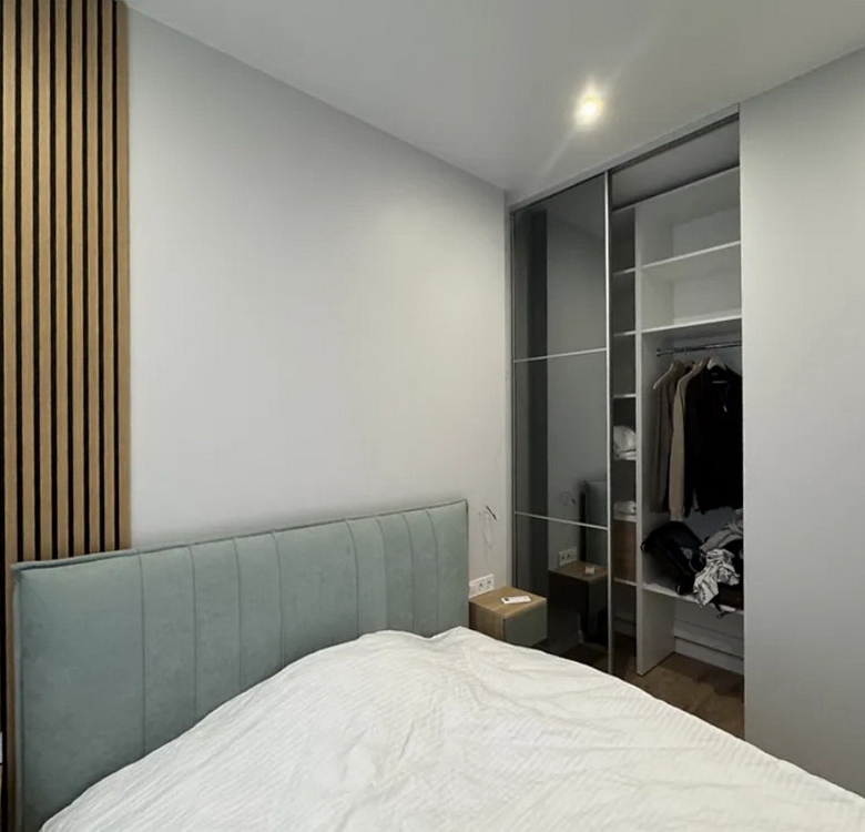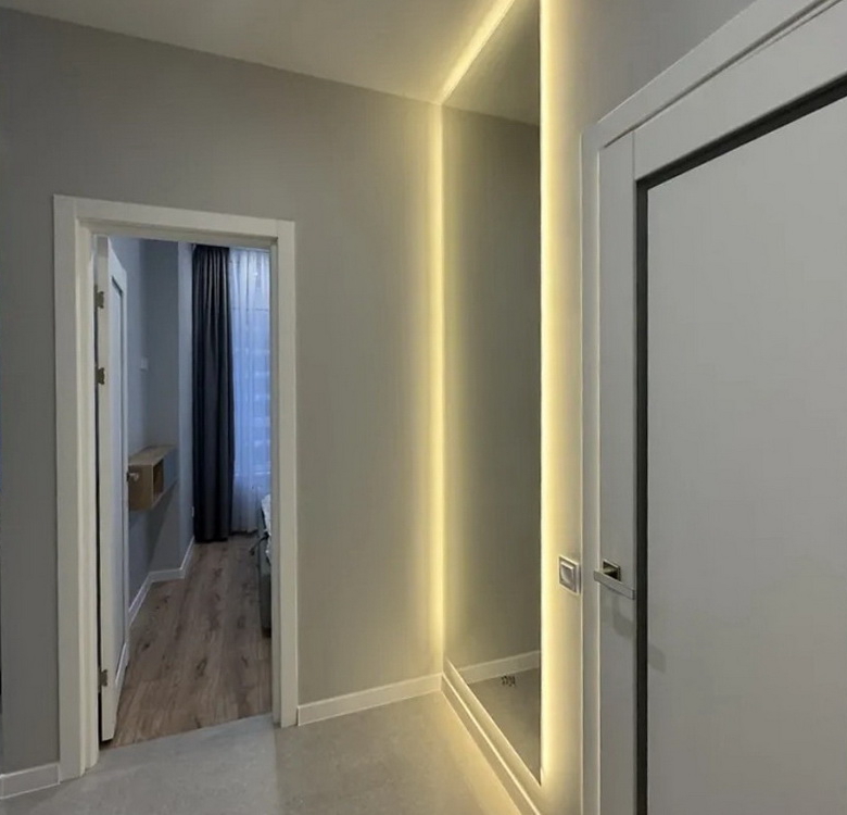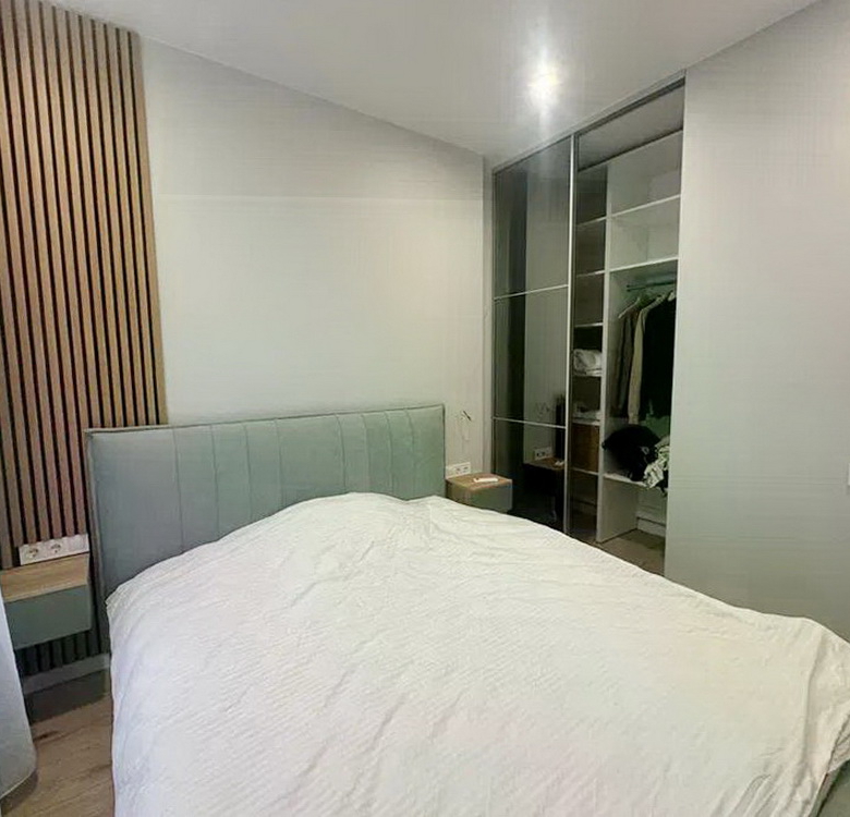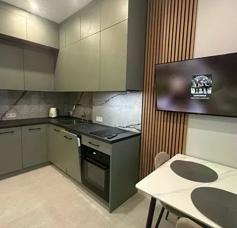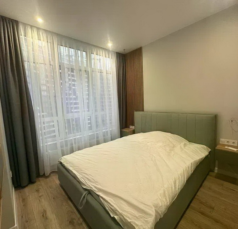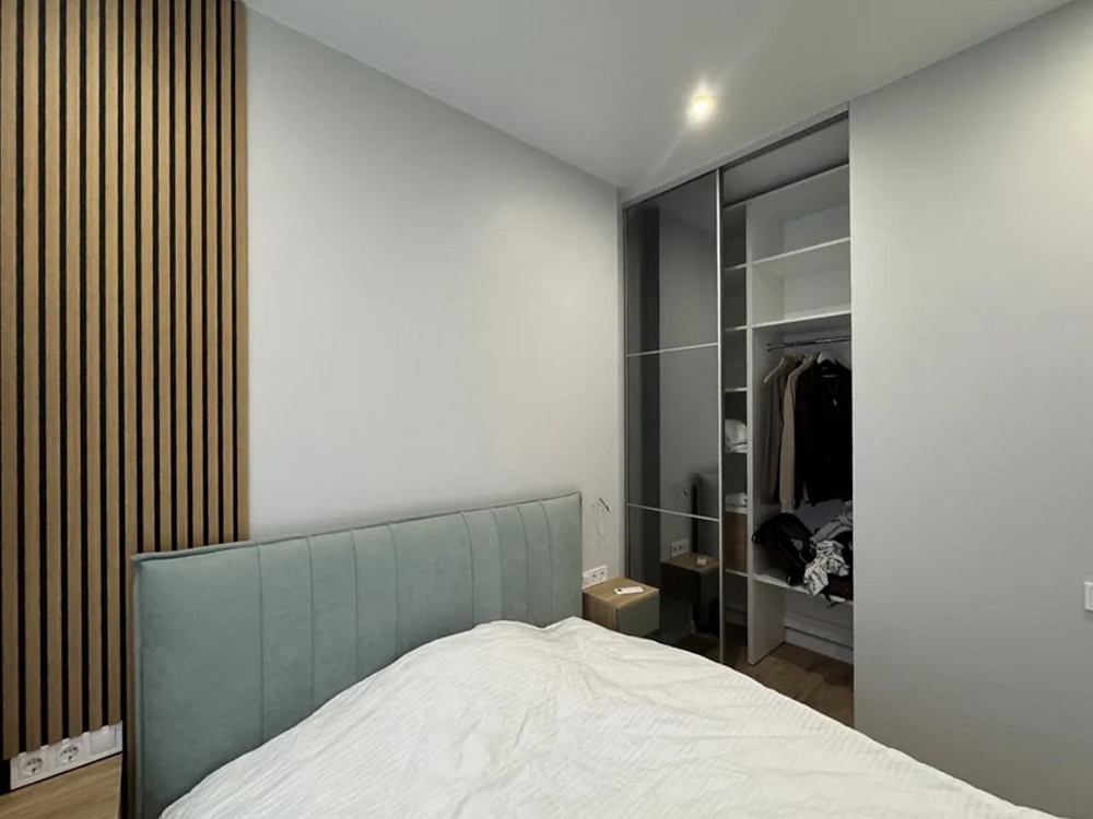 Кухня виконана на замовлення з вишуканим підсвічуванням, що додає особливого шарму, а гардеробна кімната створює додатковий простір для вашого зручного життя. Вбудовані шафи організують ваші речі максимально раціонально, а панорамні вікна наповнять квартиру світлом і дозволять насолоджуватися природою в будь-який час доби.
