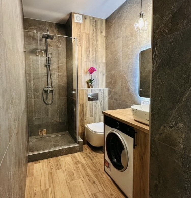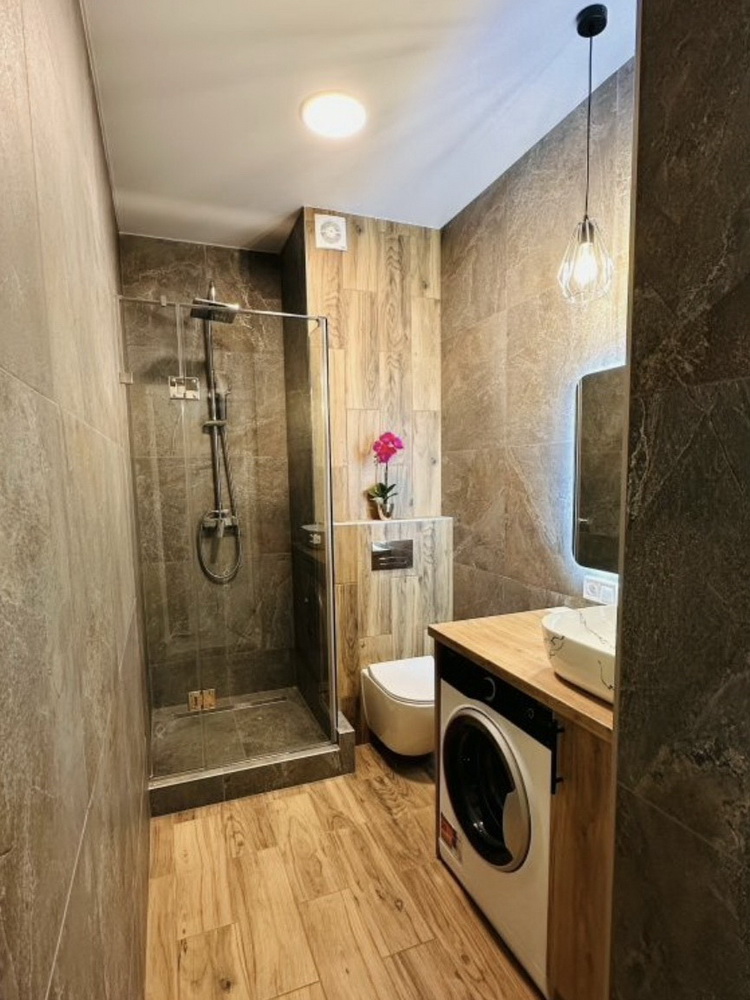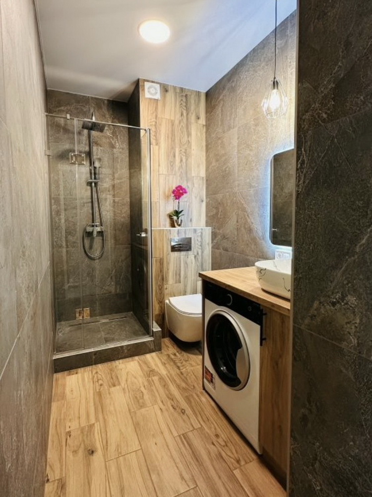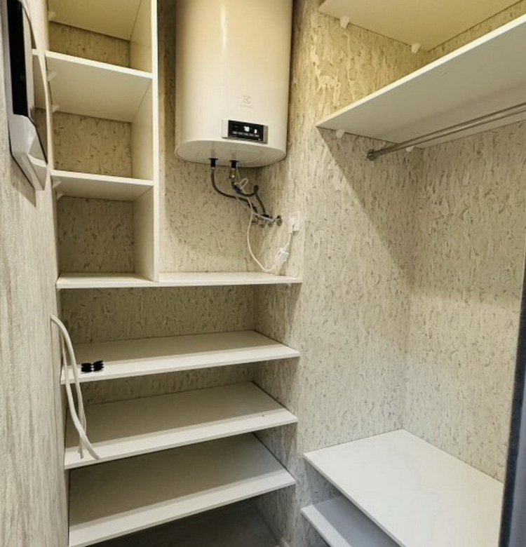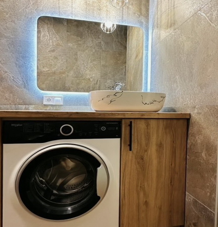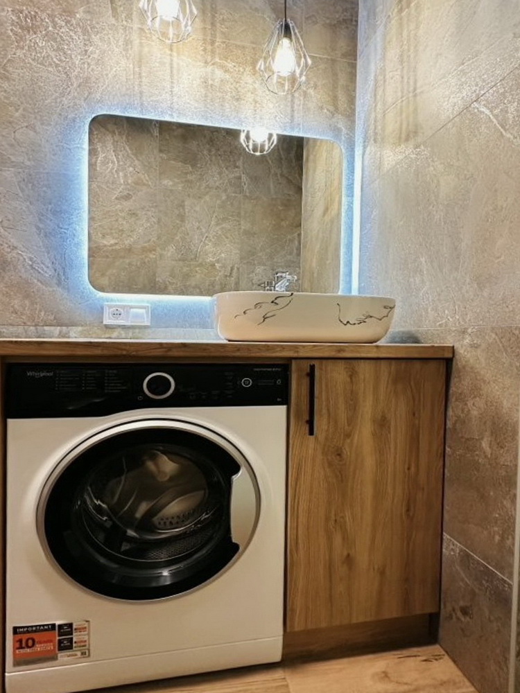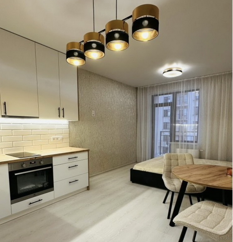Насолоджуйтесь новими приладами: холодильник і пральна машина Whirlpool, бойлер на 80 літрів та духова шафа Electrolux, потужний кондиціонер на 33 кв. м. для комфортного клімату влітку. А також зручне ліжко з підйомним механізмом для максимальної функціональності.