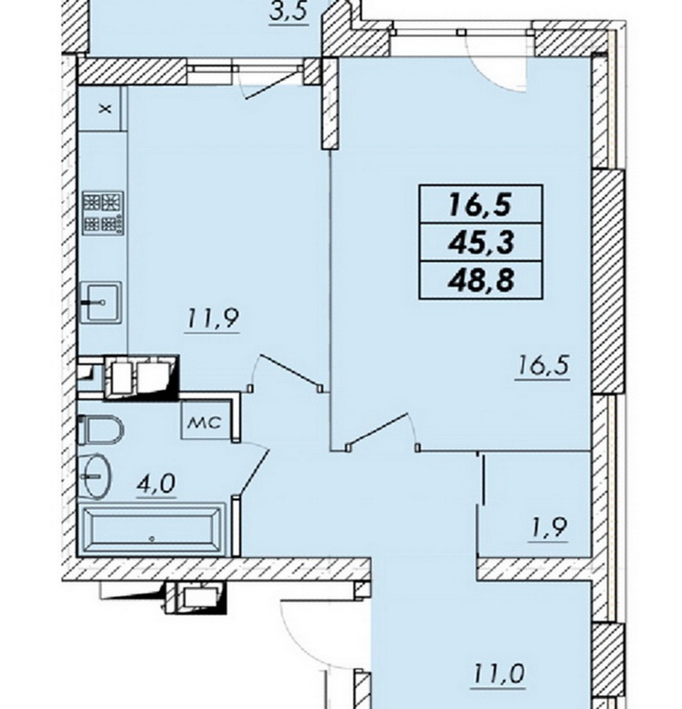 Ваша нова квартира має найкращу планування, що поєднує оптимальний простір і зручності. Запрошуємо насолодитися неймовірними краєвидами на захід сонця просто з вікна вашого дому. Квартира готова до створення вашого затишного куточка – стан від забудовника дає вам можливість реалізувати усі ваші дизайнерські ідеї.