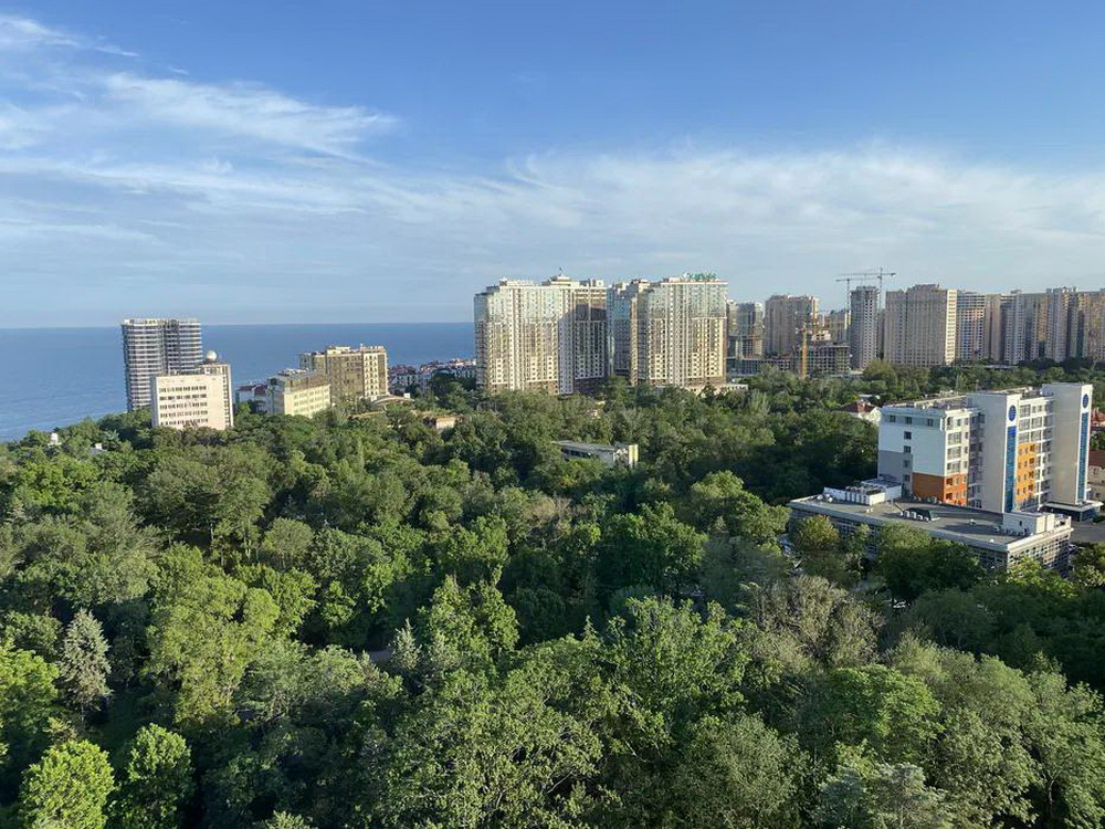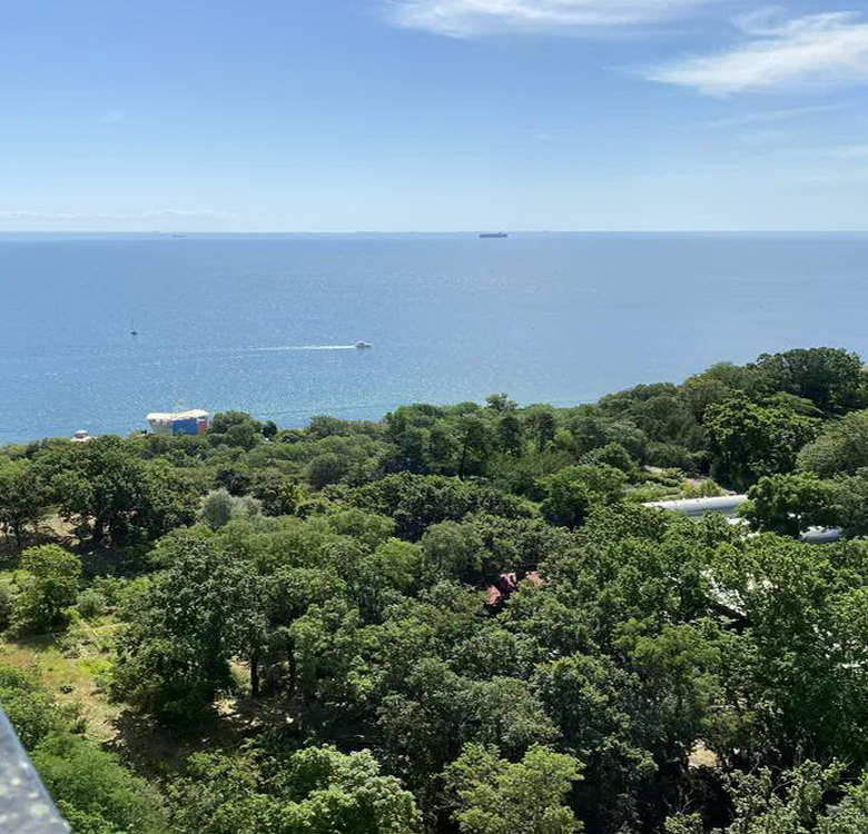 Квартира з великими панорамними вікнами, які відкривають захоплюючий вид на море та Ботанічний сад.