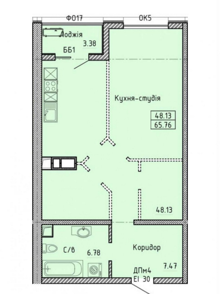 Загальна площа квартири складає 66 м², а вільна планування дає безмежні можливості для створення простору вашої мрії. Уявіть чудову евродвушку, де кожен сантиметр продуманий до деталей!
