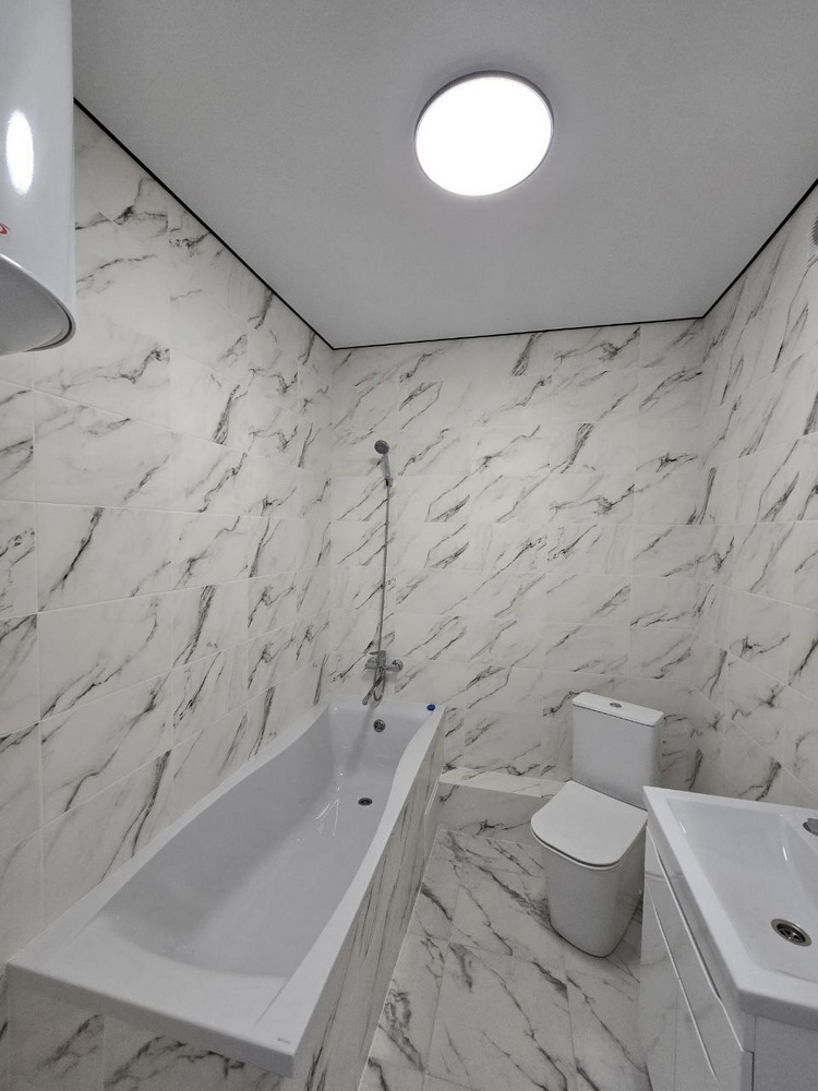 🚿 Просторий санвузол: ванна для ваших релаксацій, бойлер, зручна сушка для рушників, велике дзеркало та стильна тумба.