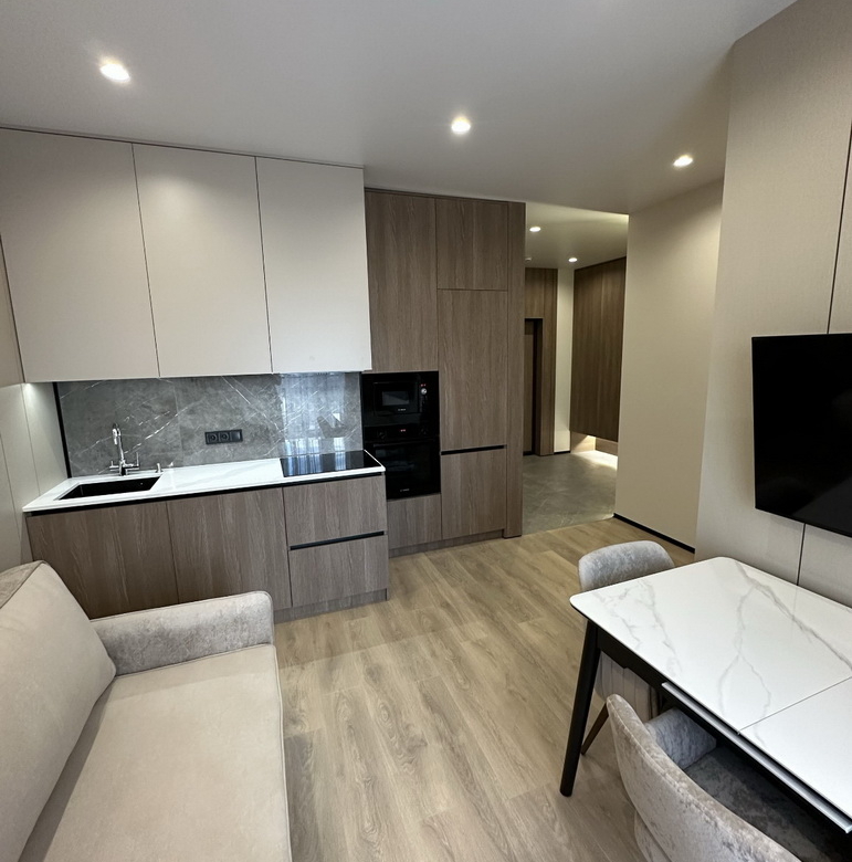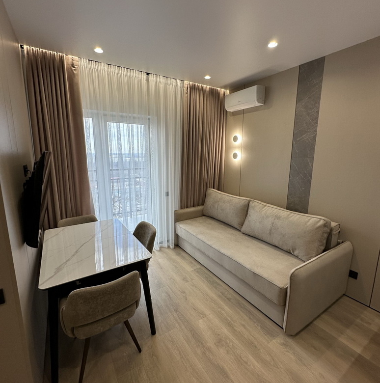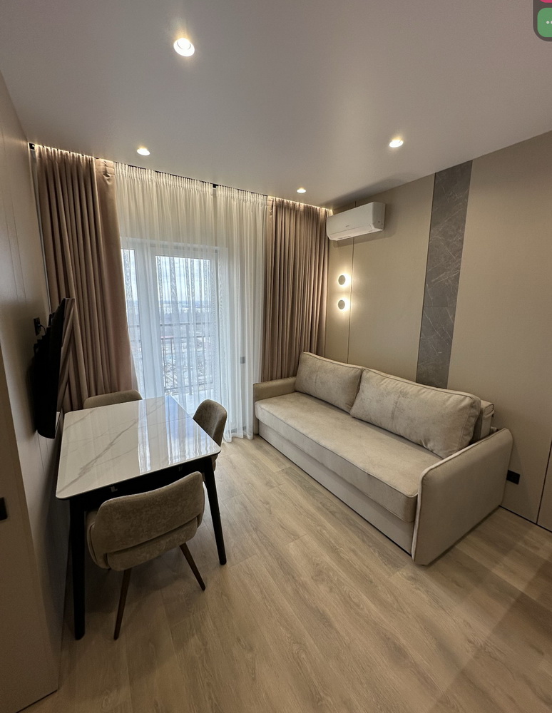 Квартира площею 43 м² розташована на 20-му поверсі, звідки відкривається неймовірний вид на місто. Простора світла кімната вже облаштована меблями та побутовою технікою, що дозволить вам відразу ж насолоджуватись новим житлом.