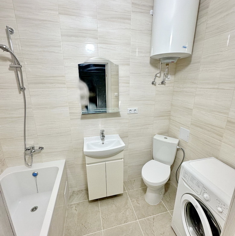 У квартирі продумане планування: простора спальня, стильна кухня-студія для кулінарних експериментів та сучасний санвузол. Усе необхідне обладнання та меблі залишаються у квартирі, тому вам не доведеться витрачати додаткові гроші й час на облаштування!