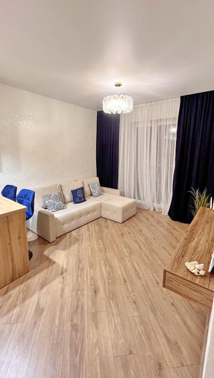 Ця чудова квартира знаходиться на 7-му поверсі 10-поверхового будинку та має загальну площу 35 м². У квартирі зроблено якісний сучасний ремонт, що підкреслює її елегантність і комфорт. Вона укомплектована всією необхідною меблюванням та побутовою технікою, які залишаються новим власникам (окрім телевізорів).