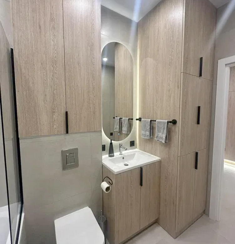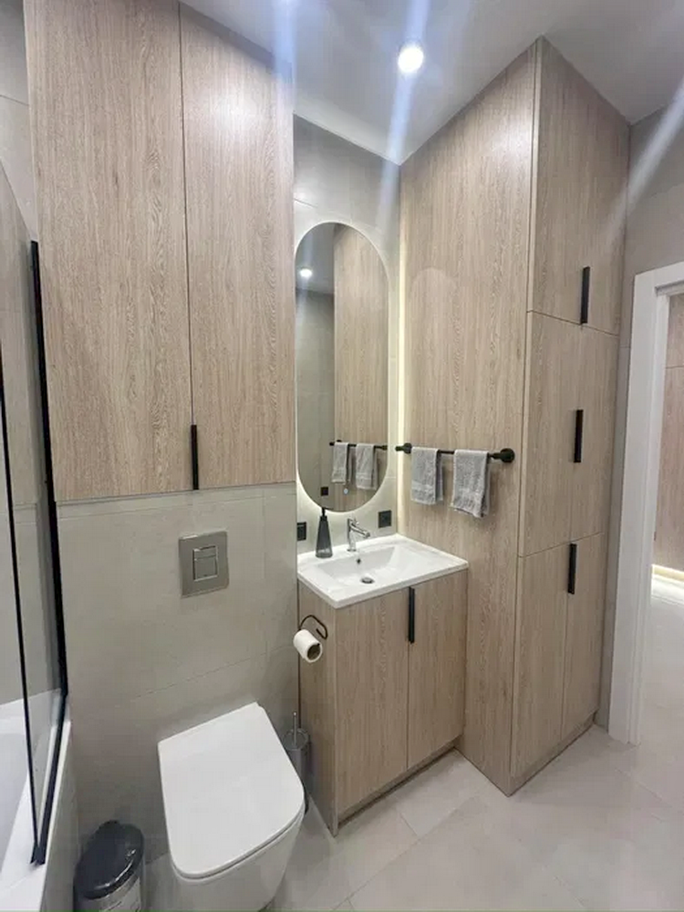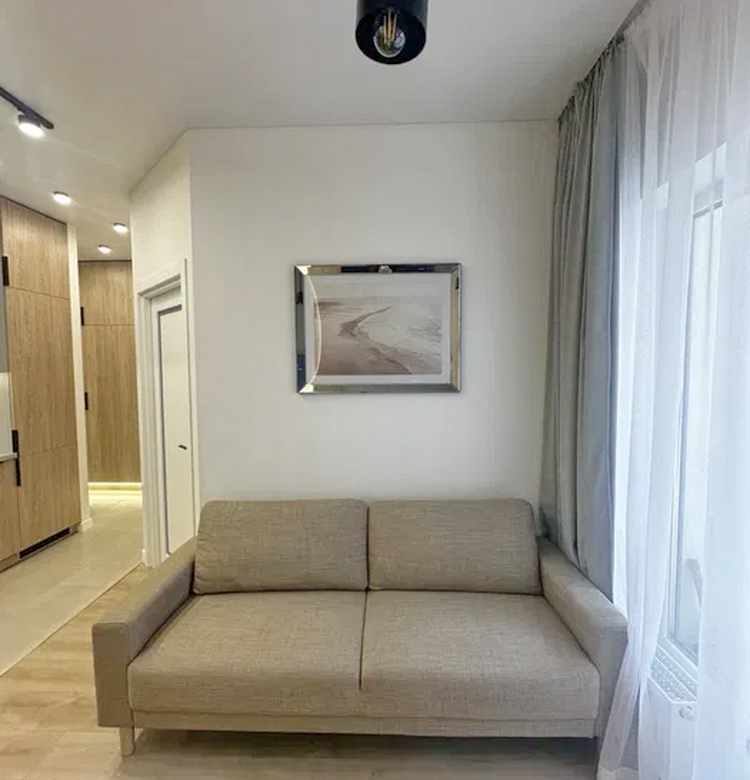 Додатково у квартирі передбачено багато місць для зберігання: велика 3,5-метрова шафа в прихожій з розділами для одягу, взуття та господарського інвентарю, а також просторий шафа в санвузлі та спальній кімнаті.