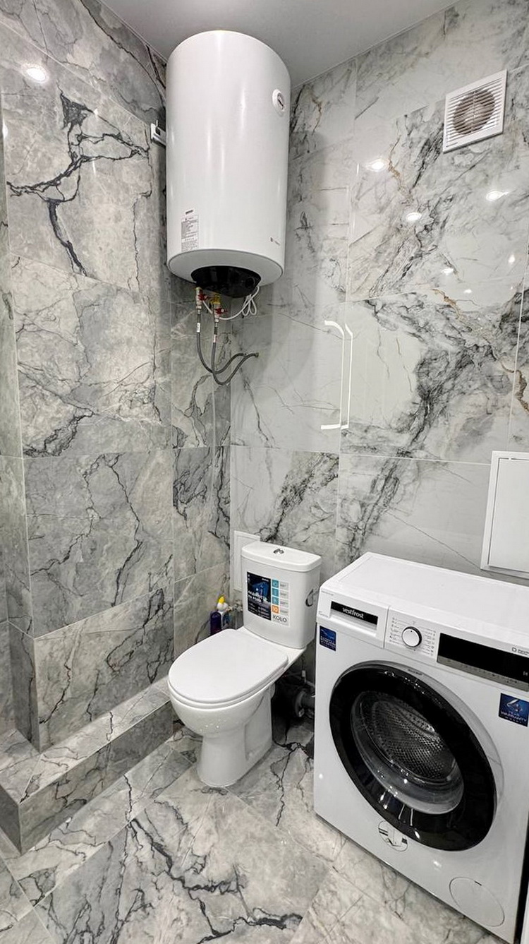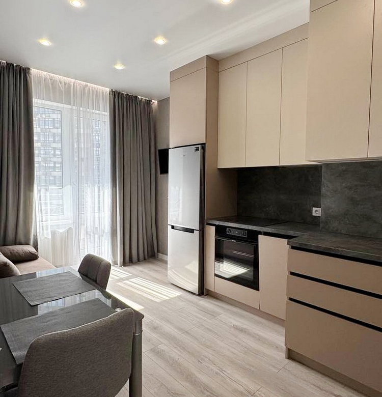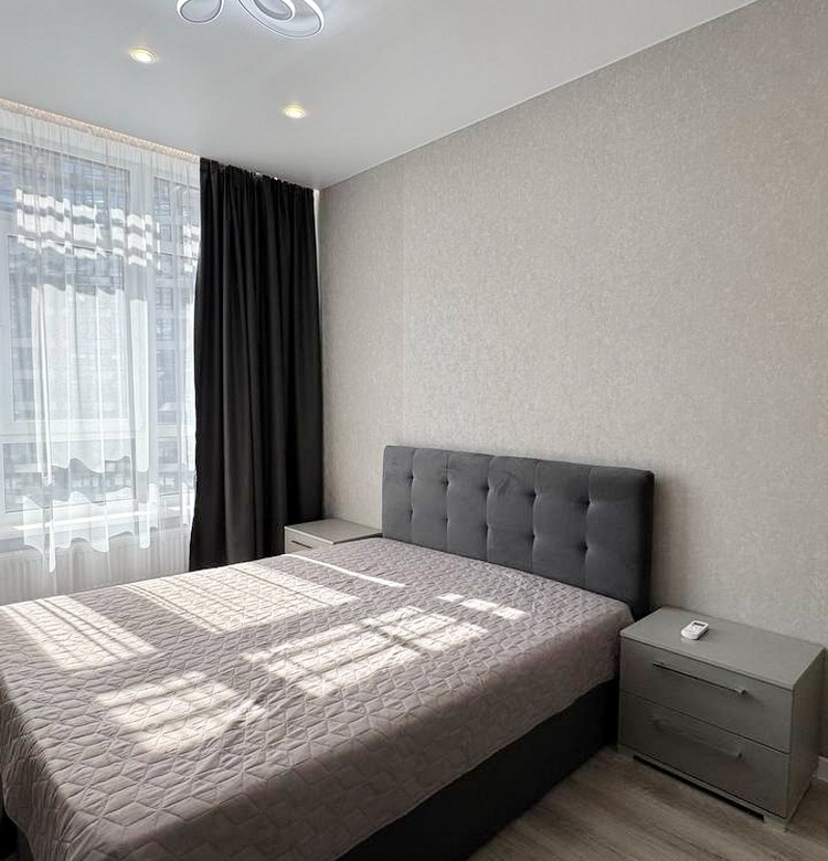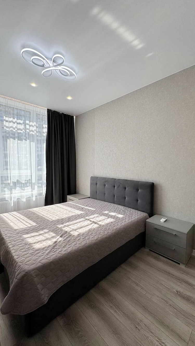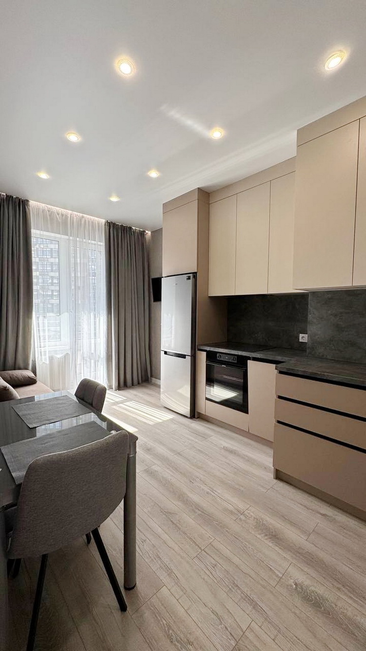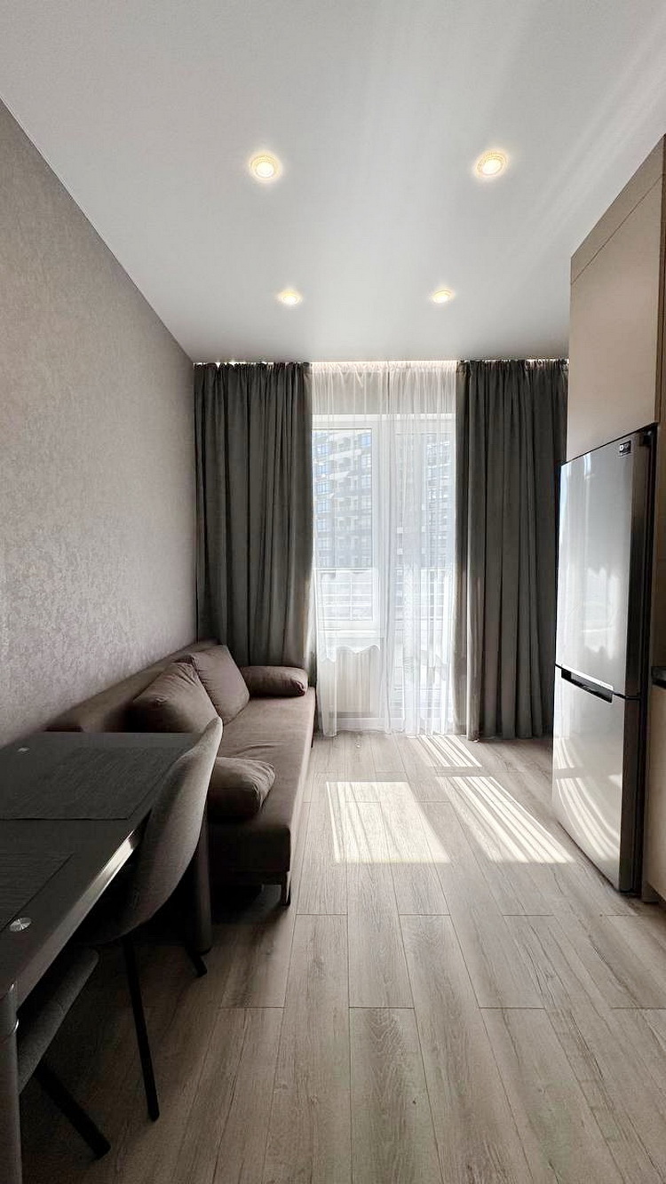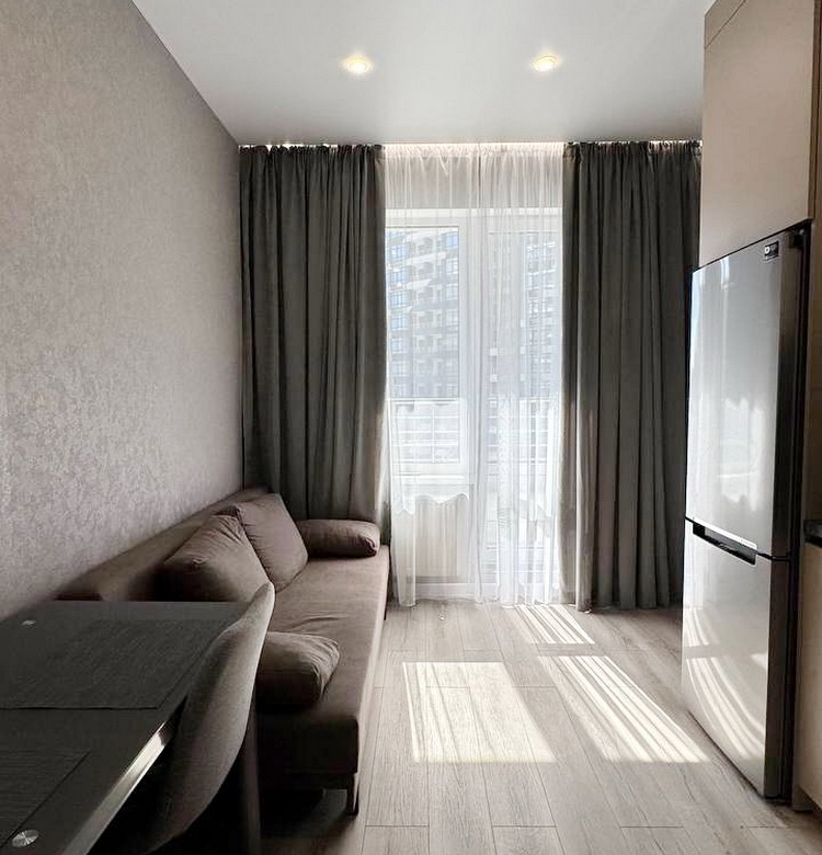Простора 1-кімнатна квартира на середньому 10-му поверсі, розташована в зданій п’ятій секції, площею 38 м². Зручна кухня-студія поєднана зі спальнею, та великий балкон з чудовим видом на двір у Житловому комплексі Атмосфера.