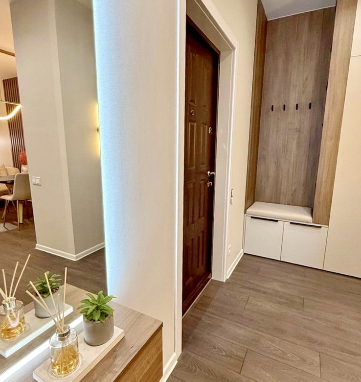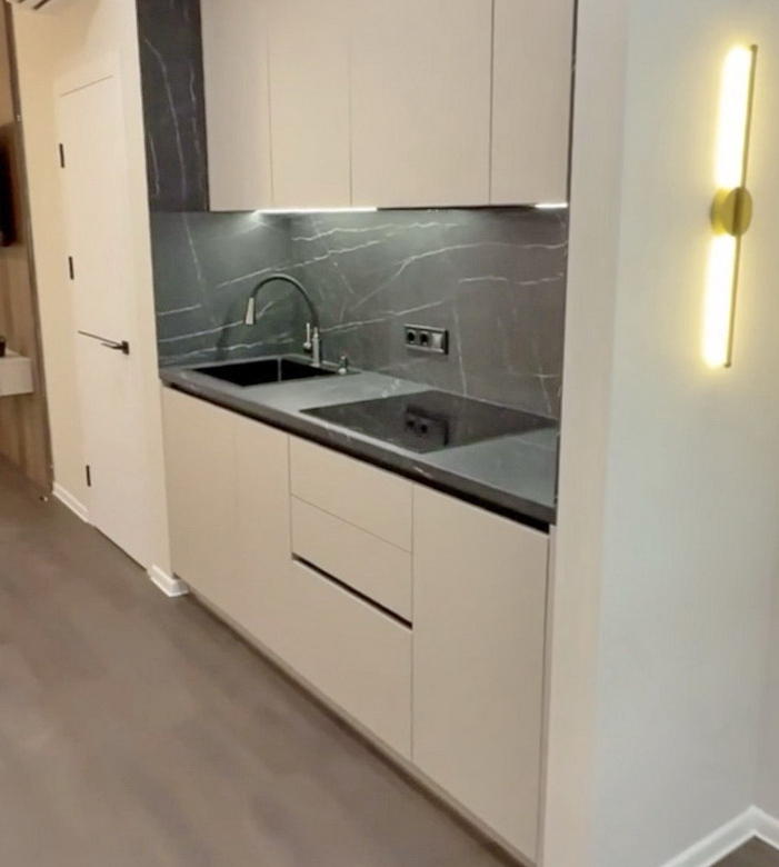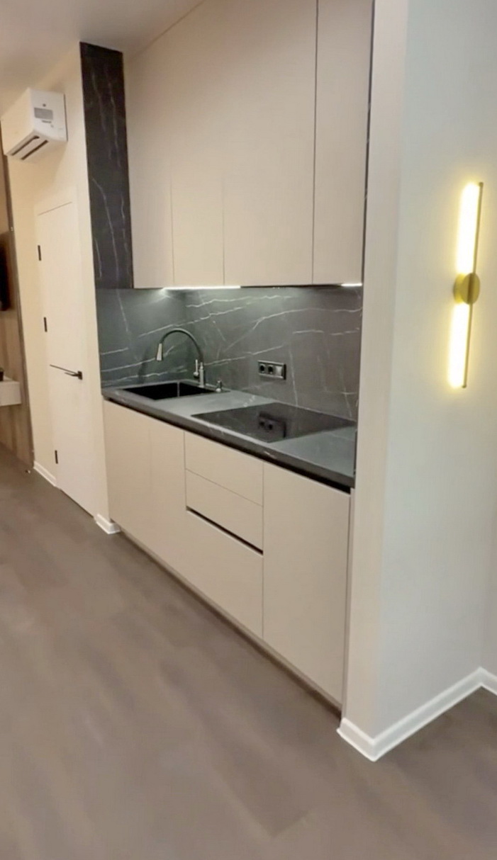 Площа квартири складає 42 квадратних метри, де кожен сантиметр продуманий до дрібниць. Правильна планування з кухнею, що має вікно, дозволяє насолоджуватись природним світлом, в той час як ваша затишна кімната з балконом відкриває вам захоплюючі заходи сонця. У вас є можливість легко відділити простір за допомогою розсувної двері, створивши ще одну кімнату для вашого комфорту.