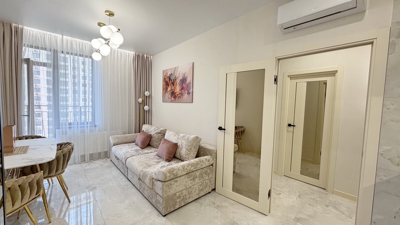 – **Якісний ремонт:** Квартира вирізняється стильним дизайном, продуманим до кожної деталі. Використані тільки найкращі матеріали, що забезпечують довговічність та естетичність.