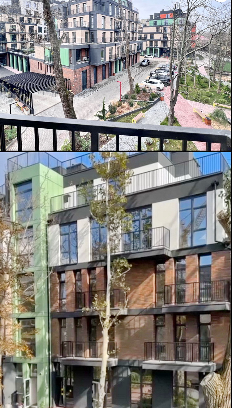 – **Вид** з вікон – на внутрішній доглянутий зелений дворик, який створює атмосферу спокою й затишку.