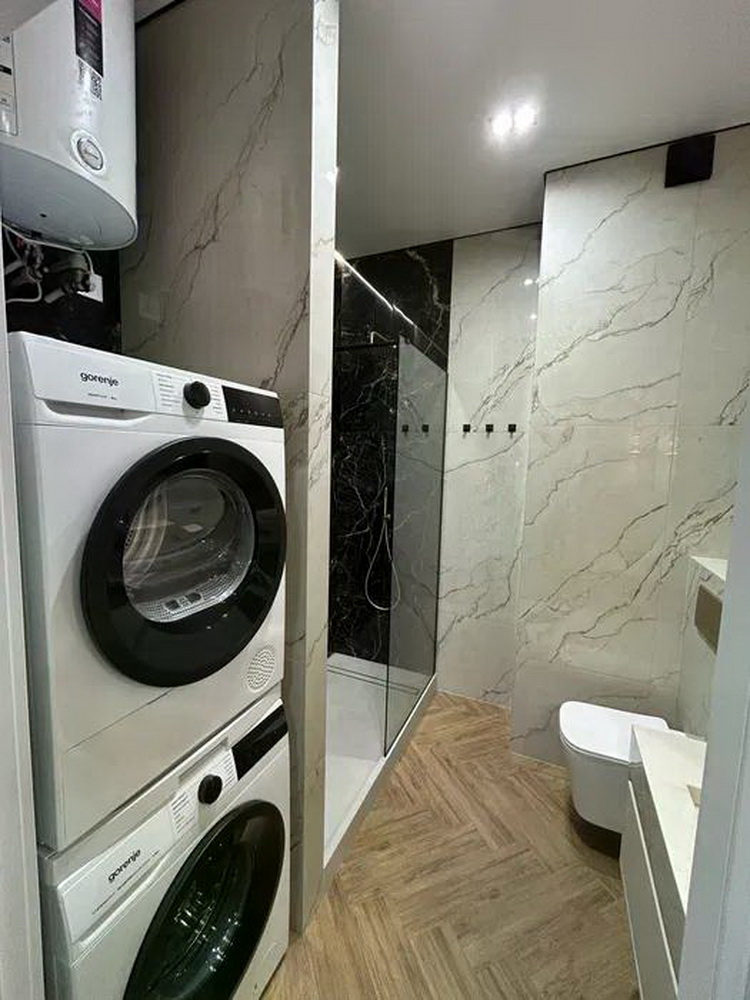 В квартирі вже встановлені всі необхідні меблі та сучасна техніка. Ви зможете насолоджуватись теплом підлоги, а міні-вимикач та нічна підсвітка створять атмосферу затишку і спокою.