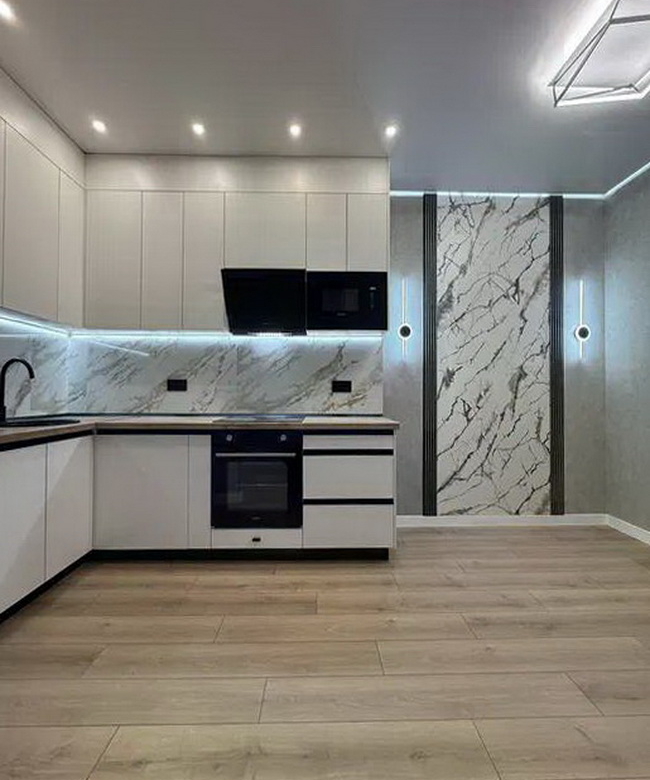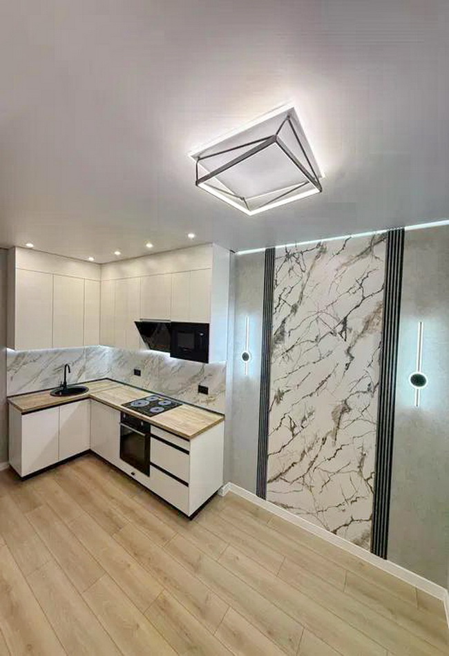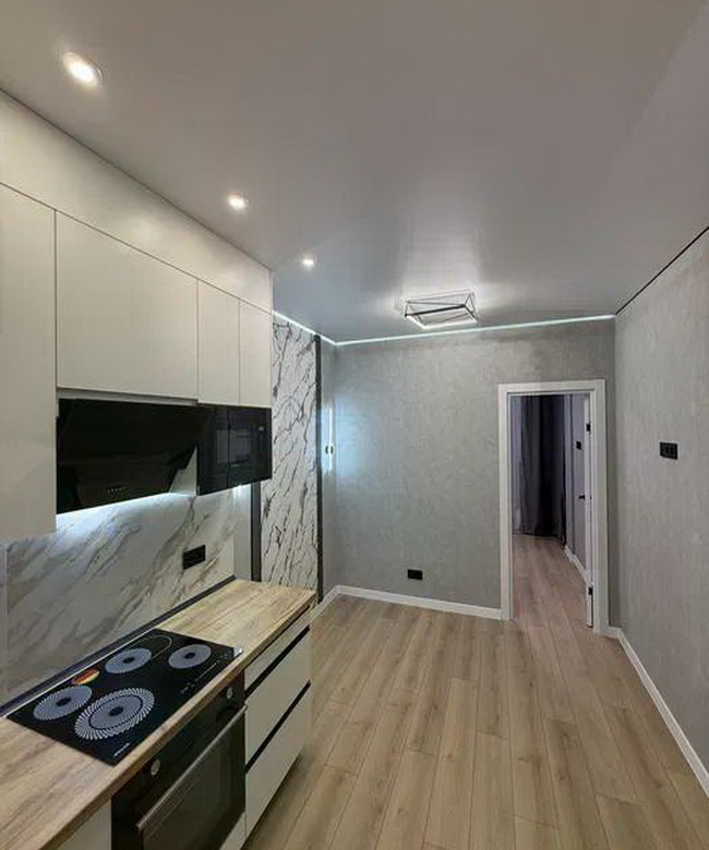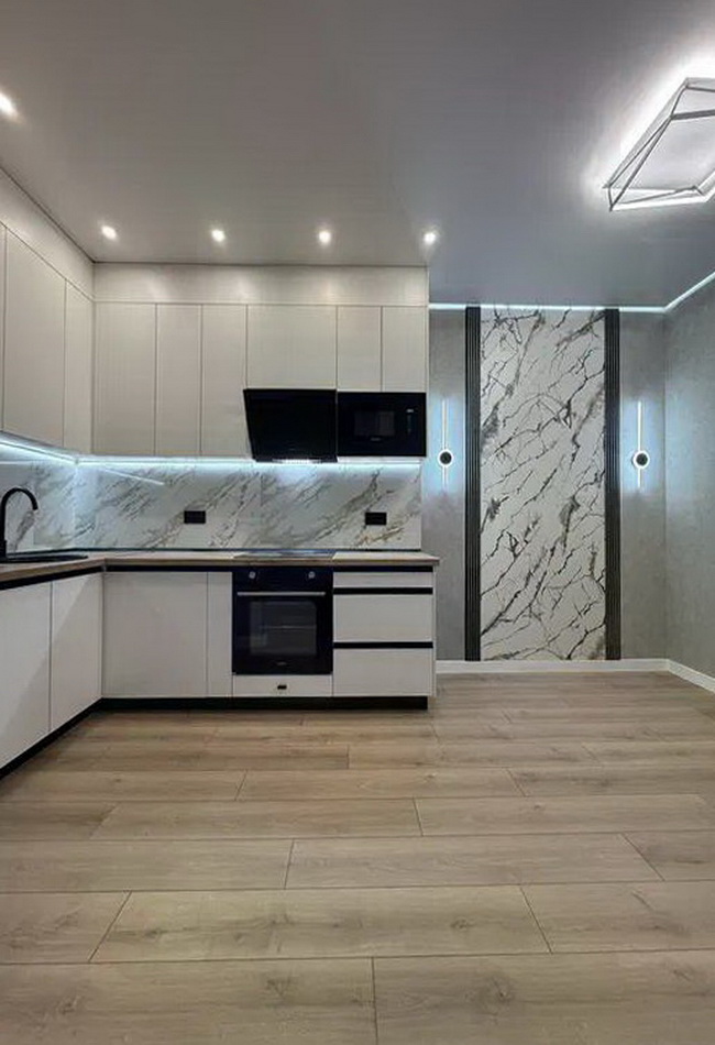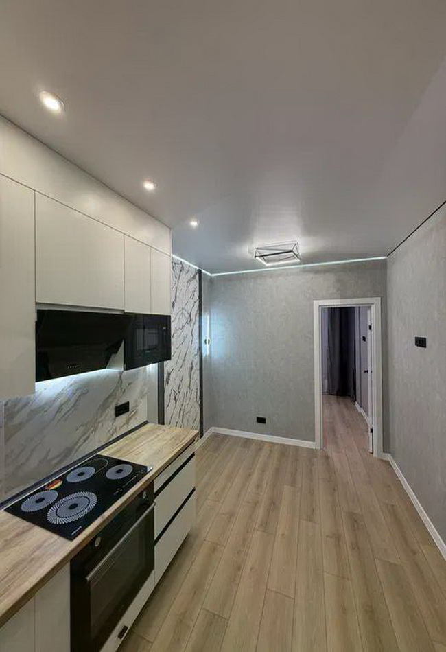 Кухня-студия — это сердце вашего нового жилья. Просторная и полностью укомплектованная сучасною кухонною технікою, вона стане ідеальним місцем для кулінарних експериментів і сімейних вечорів.