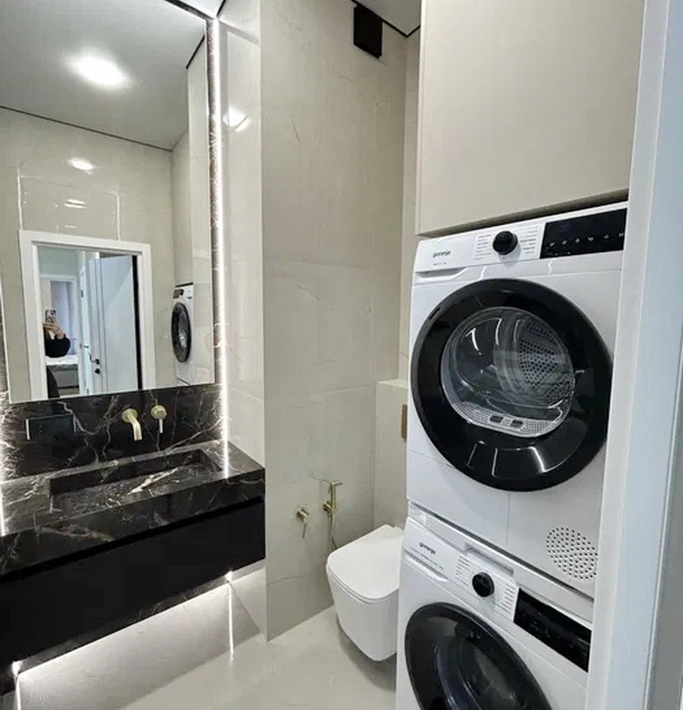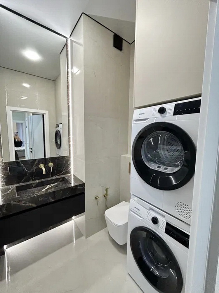 У квартирі встановлені стильні вбудовані меблі, виготовлені на замовлення, а також побутова техніка від провідних світових брендів — все для вашого комфорту та задоволення.