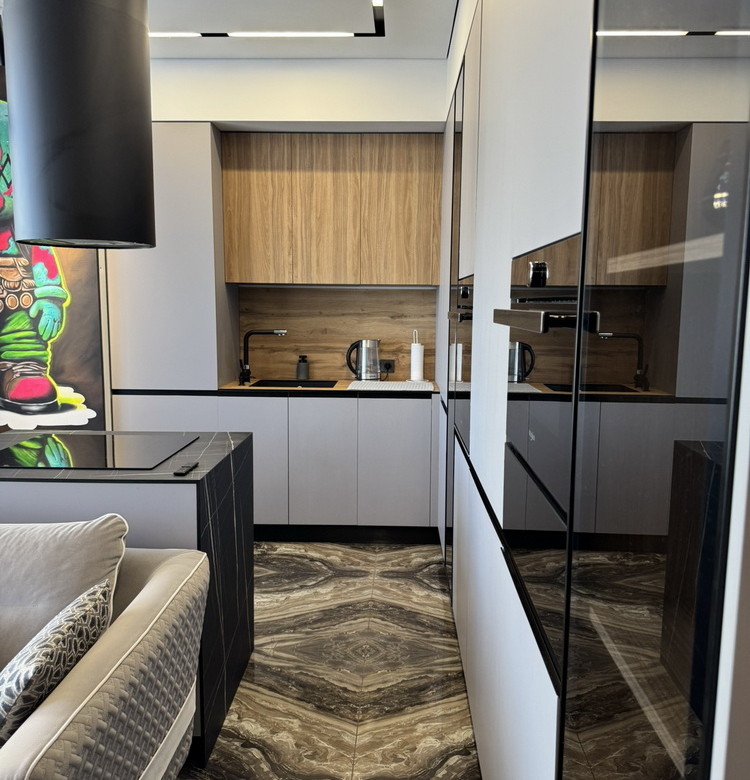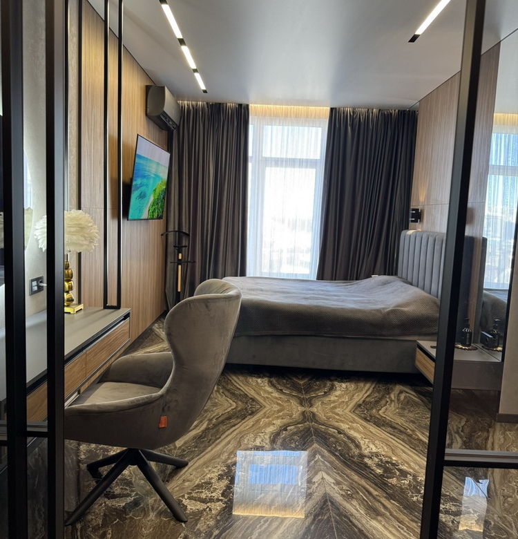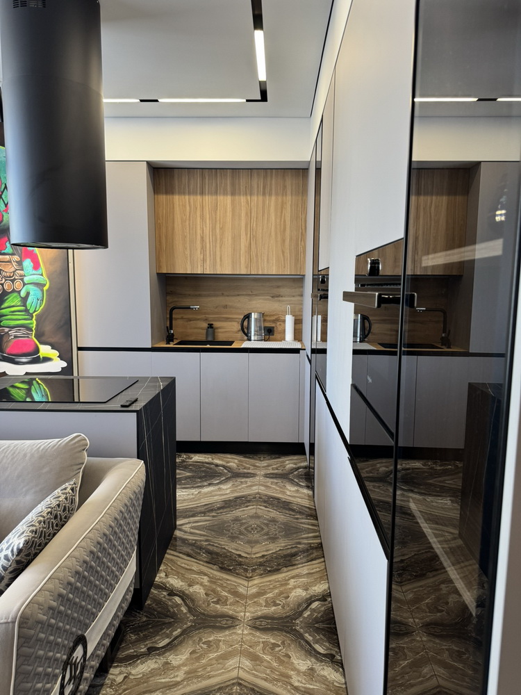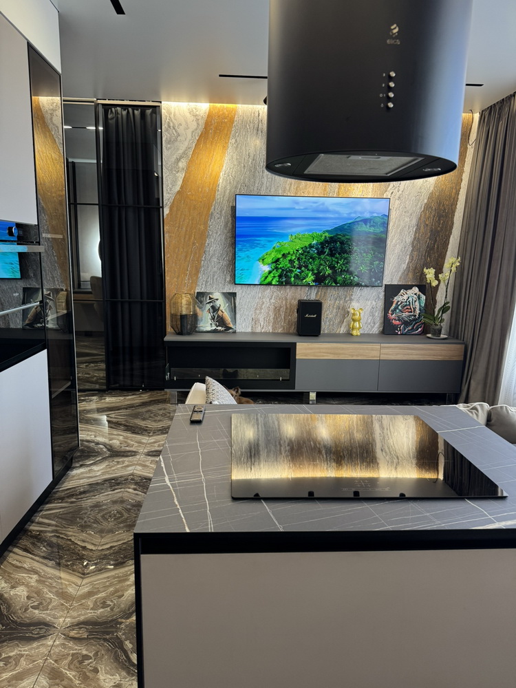 Сучасна техніка та елегантні меблі ідеально поєднуються в гармонійний інтер’єр, продуманий до найменших деталей для вашого комфортного та естетичного життя. Просторе планування дозволяє насолоджуватися життям у кожному куточку квартири, великі вікна забезпечують безмежну кількість світла та повітря.