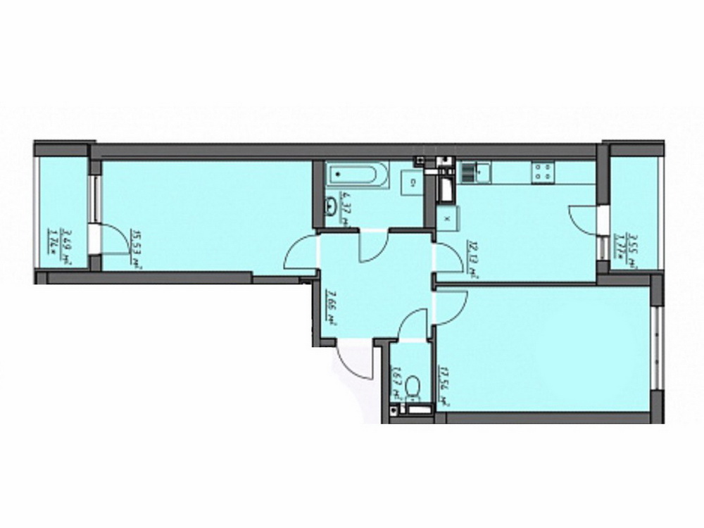Двостороннє планування передбачає окрему кухню-студію з виходом на балкон, де ви зможете насолоджуватися сніданками з видом на місто, а також дві затишні спальні та роздільний санвузол. Просторий хол та ще один балкон зі спальні додають відчуття простору та комфорту.