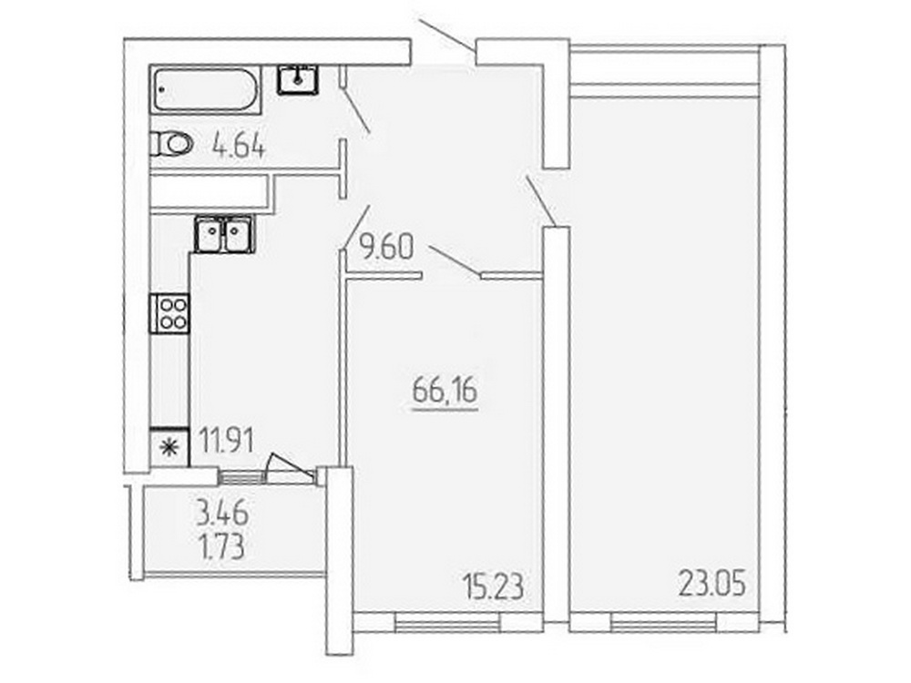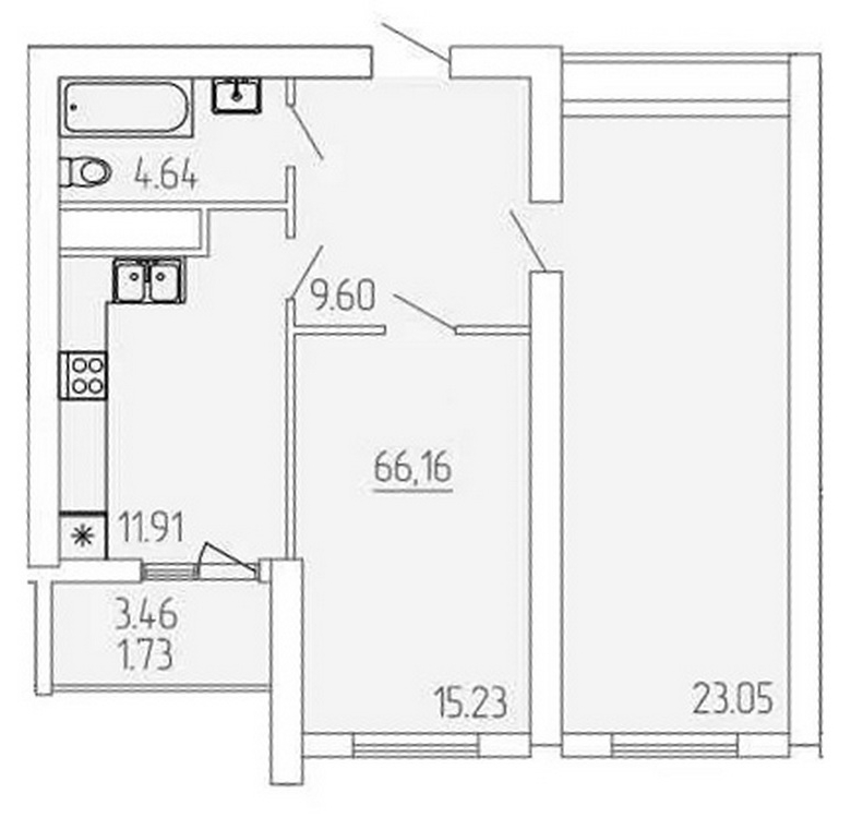 Площа квартири складає 66,3 м², що дозволяє з комфортом розміститися сім’ї. Стан квартири — від забудовника, що дозволяє втілити у життя ваші найсміливіші дизайнерські ідеї та створити простір мрії.