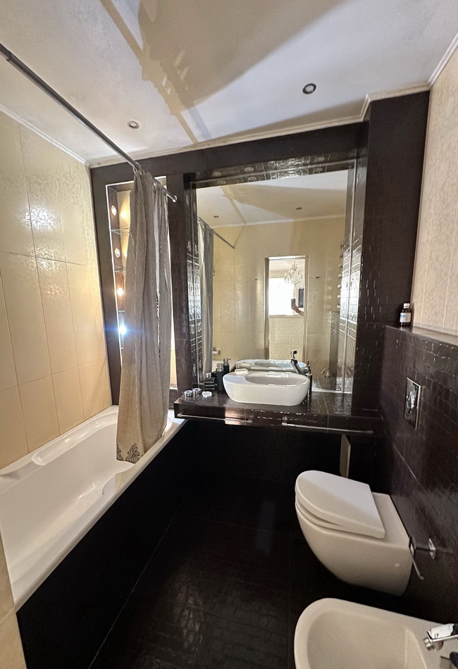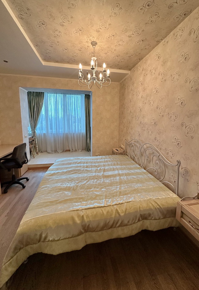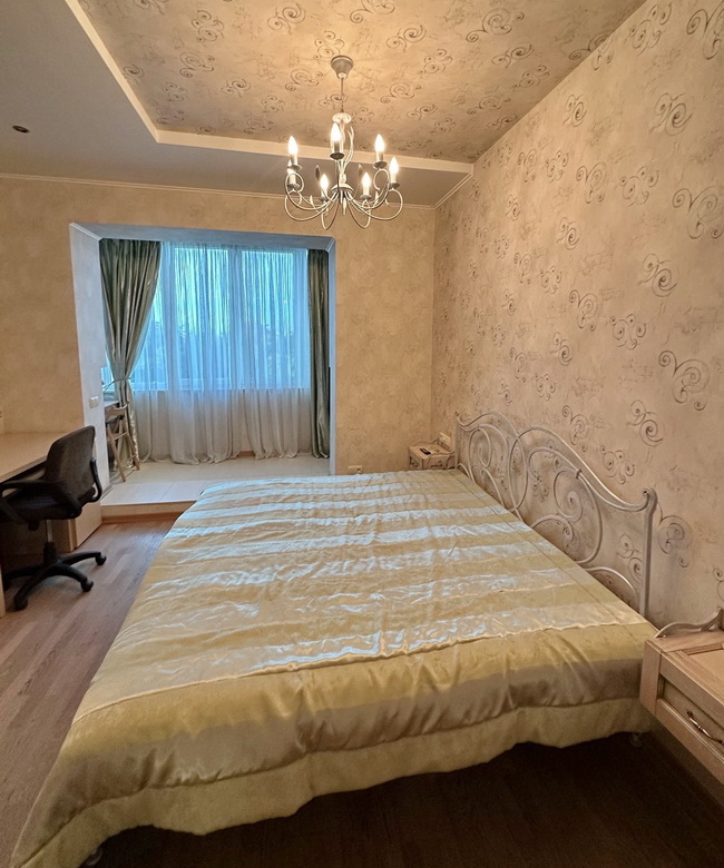 • Спальня 1 (23 м²): вбудована шафа, кована ліжко з ортопедичним матрасом, засклений балкон, кондиціонер, телевізор.