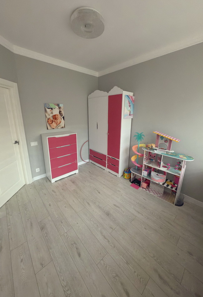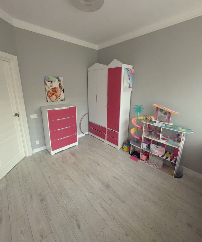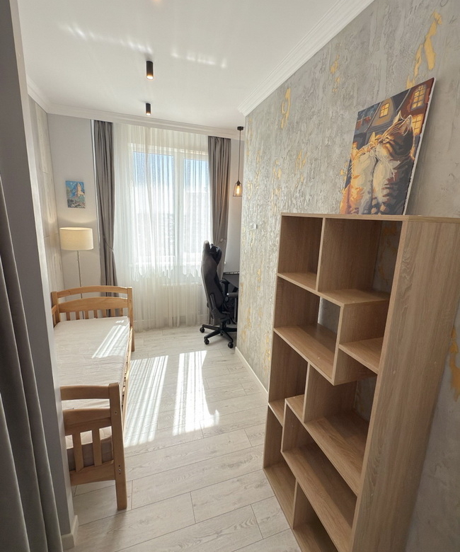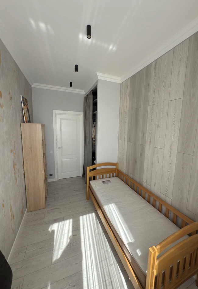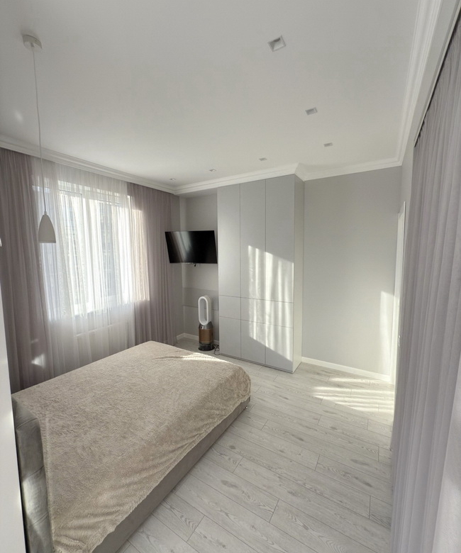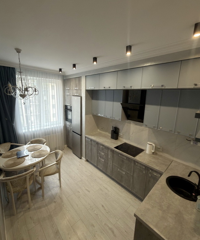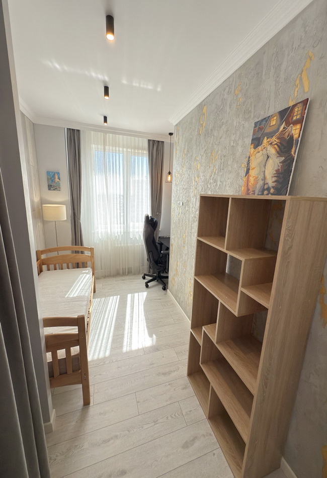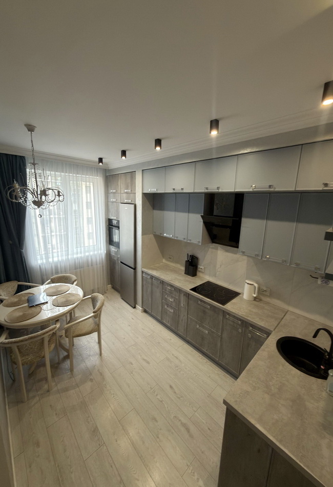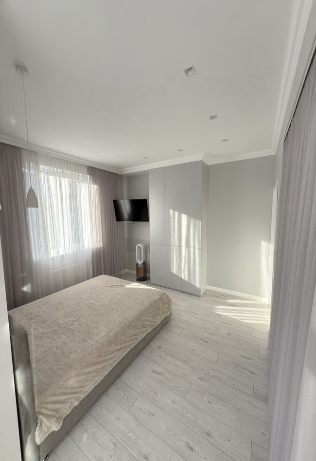 Сучасна перепланування — три окремі кімнати, кухня-студія, гардеробна, комора та безліч вбудованих шкафів для максимального комфорту.