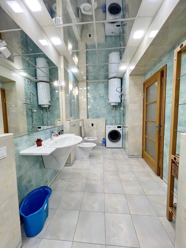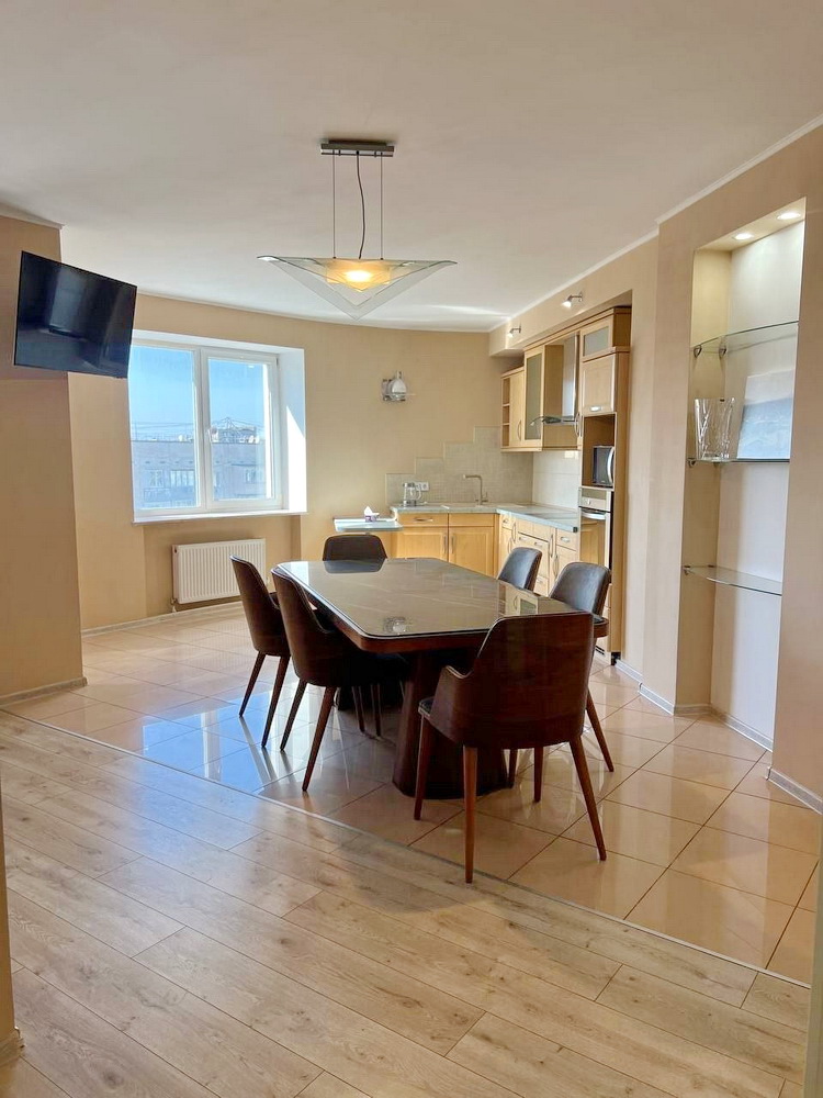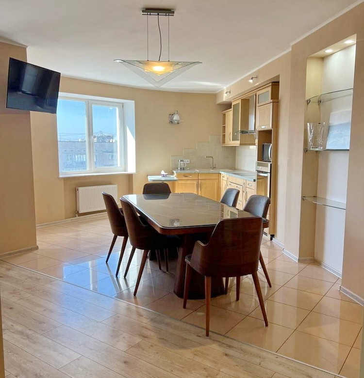 Загальна площа квартири складає 163.9 кв.м, з яких 91.4 кв.м займає житлова площа, а кухня вражає своїми 28.5 кв.м – ідеальне місце для кулінарних шедеврів та сімейних обідів!