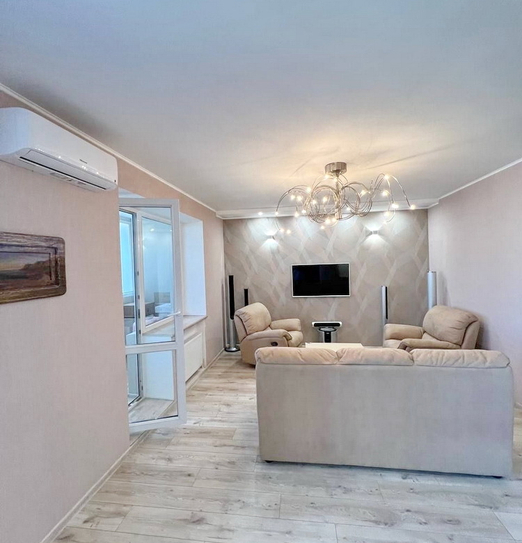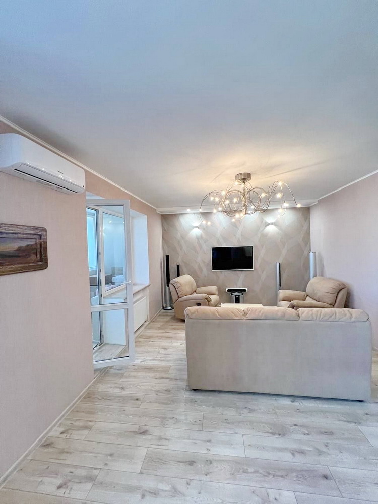 Будинок, зведений у 2001 році надійною будівельною компанією “Стикон”, виготовлений з червоної цегли, що забезпечує відмінну теплоізоляцію та довговічність. В квартирі є три просторі кімнати, а також три лоджії, які подарують вам чудовий вид на місто та достатньо місця для відпочинку.