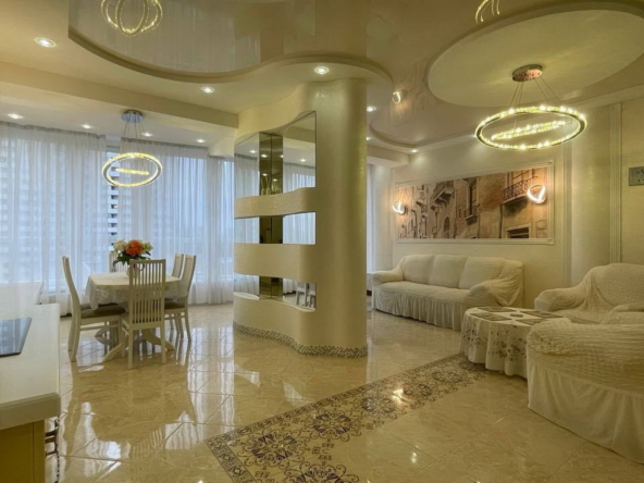 Особливістю цієї квартири є розкішна дубова винтова сходи, яка стане яскравим акцентом у холі. Пол покритий паркетом з червоного дерева, що додає елегантності, а санвузли оздоблені плиткою. Сучасний санвузол забезпечений новою сантехнікою та великими вікнами з краєвидом на море — тут вам буде комфортно і затишно.