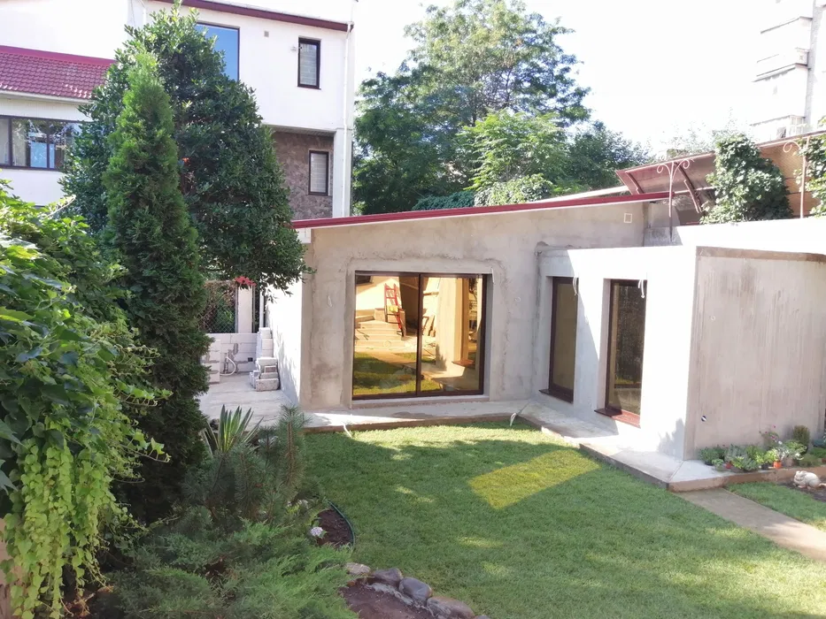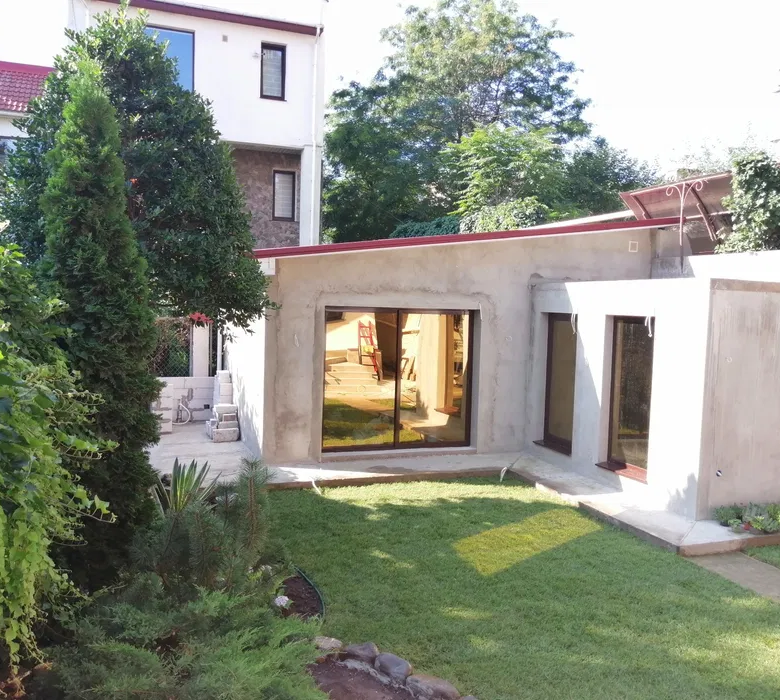 Для автомобілістів – зручний критий в’їзд, що вміщує до двох машин, де одна стоїть у гаражі, а друга під захистом роллета. Стени вашого майбутнього дому мають товщину 80 см, що забезпечує природну теплоізоляцію, а цокольний поверх утеплений пінополістиролом і відштукатурений.