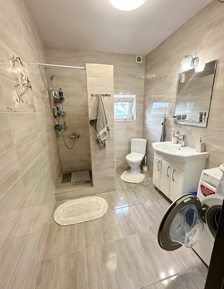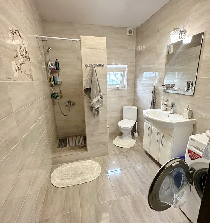 – **Сумісний санвузол** в домі, обладнаний теплою підлогою для вашого комфорту, плюс зручна вулична вбиральня.