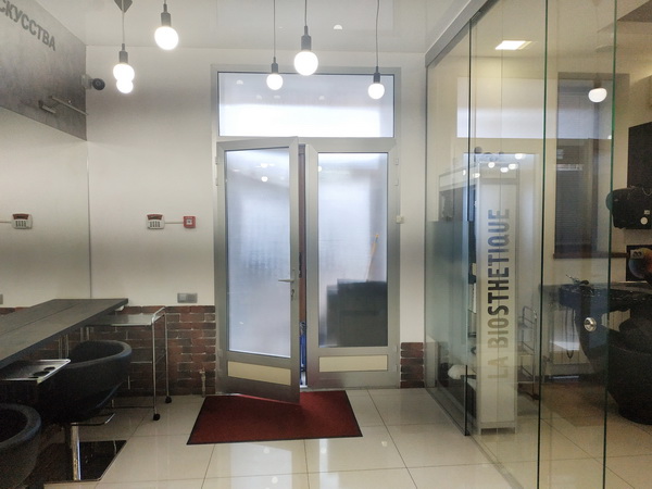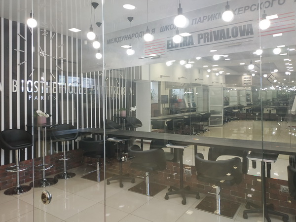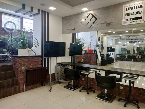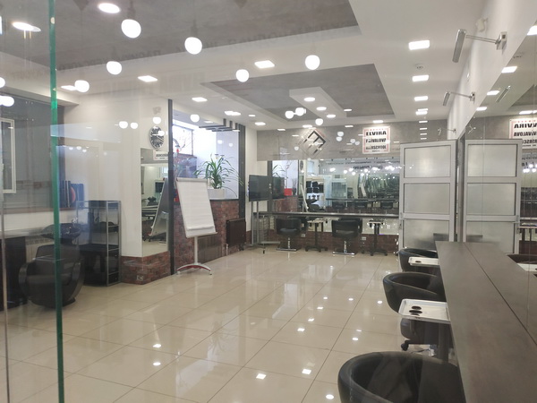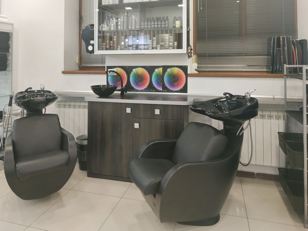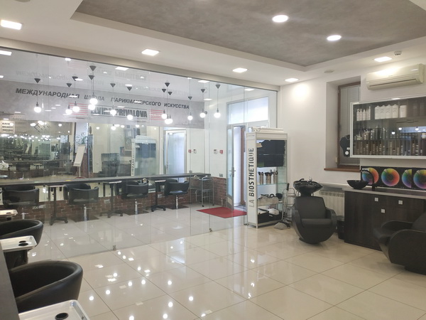 Парикмахерський зал обладнаний на 12 місць, з двома мийками “Колорбар”, з прозорою скляною перегородкою між офісом і залом, що створює ефект відкритості та комунікації.