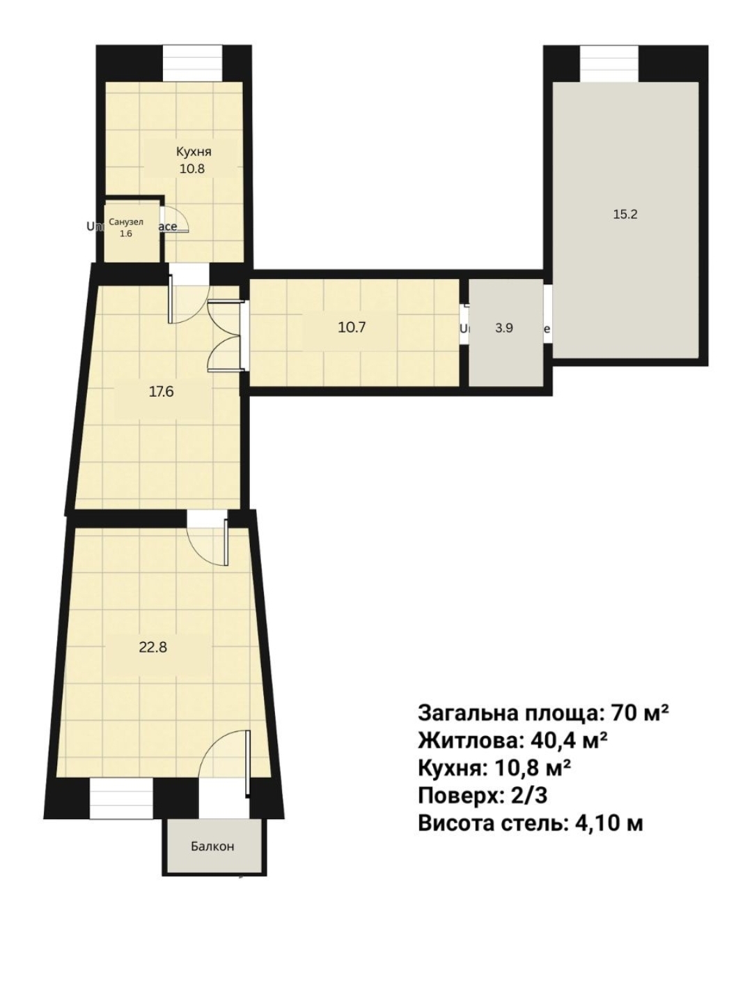 – Висота стель: 4,10 м — відчуття простору та легкості
